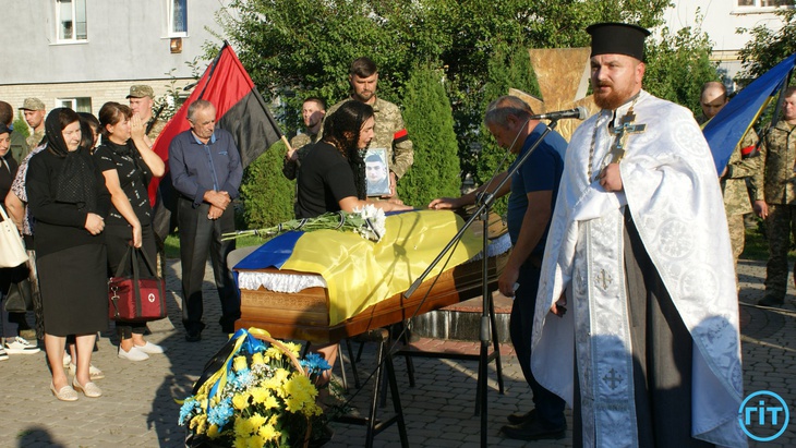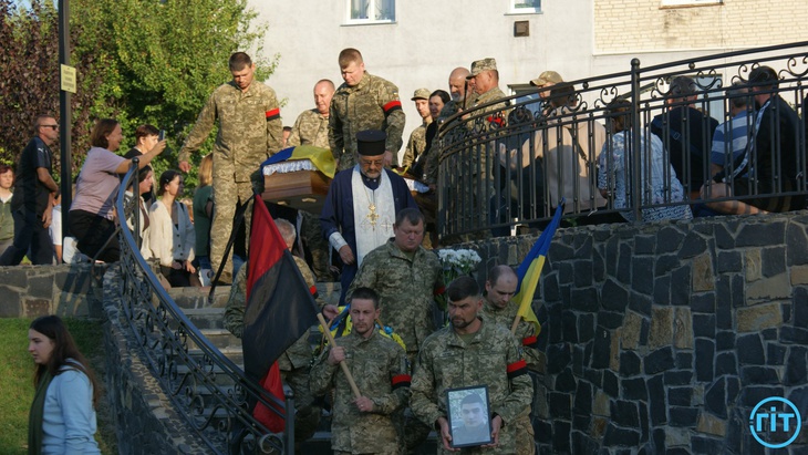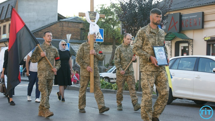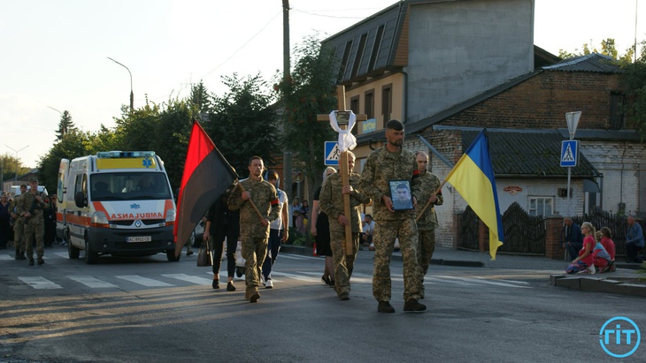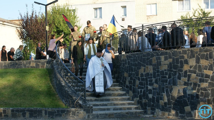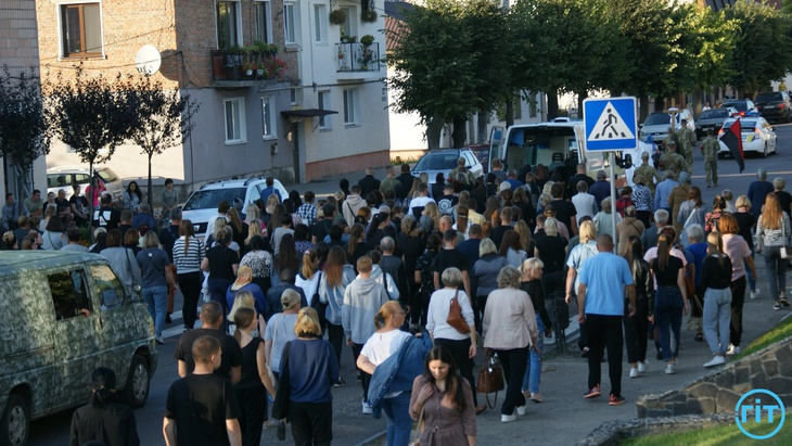 Після спільної молитви траурний кортеж із тілом Героя попрямував до храму Архістратига Михаїла. Тут з Героєм може попрощатися кожен бажаючий.