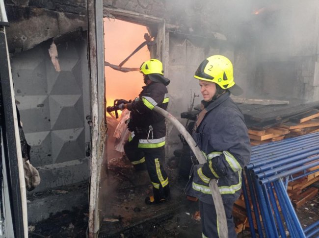 "Внаслідок влучання ракети виникла пожежа в підсобних приміщеннях СТО на площі 100 м.кв. Вогнем знищено п'ять автомобілів, ще три автівки та дві будівлі зазнали ушкоджень. Пожежа повністю ліквідована", - йдеться в повідомленні.