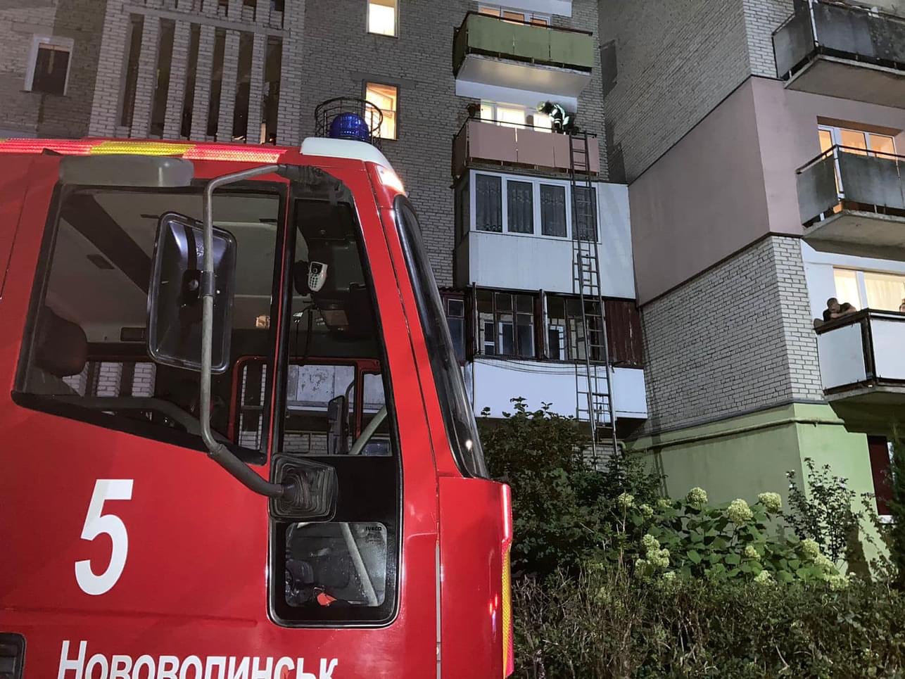 В квартирі на 4-у поверсі випадково зачинилась 7-и річна дитина. Щоб зарадити ситуації, рятувальники дістались на балкон помешкання по висувній драбині.