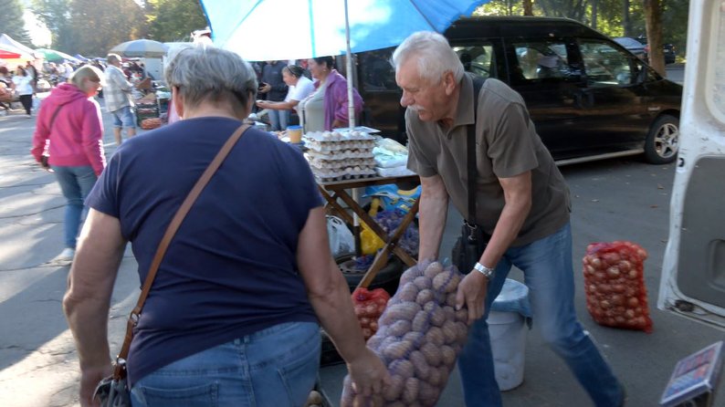 "Ціни на картоплю сім-вісім гривень за кілограм, якщо сітками брати. Я думаю, що недорого. Це нормальна ціна", – каже покупець Дмитро Лука.