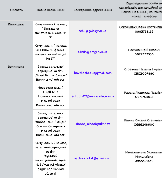 Міністерство освіти та науки України оприлюднило список окремих закладів освіти у кожній області, які нині проводять набір до класів, в яких будуть вивчати українознавчий компонент. Наразі ще розробляються технічні можливості, аби забезпечити навчання, а поки оприлюднено контакти зафіксованх шкіл.