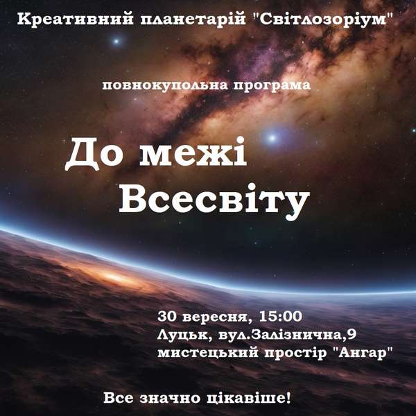 «У програмі «До межі Всесвіту» дізнаєтесь про відстані у космосі, розміри зірок, дослідження планет та про наше місце у незбагненному універсумі», – пишуть організатори.