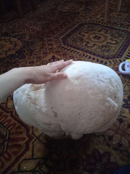 «Рекордсмена України — порхавку гігантську вагою 12 кілограмів — знайдено у Любешівському районі Волинської області біля с. Березна Воля 16 вересня 2001 року (моя трохи менша))» – йдеться у коментарях.