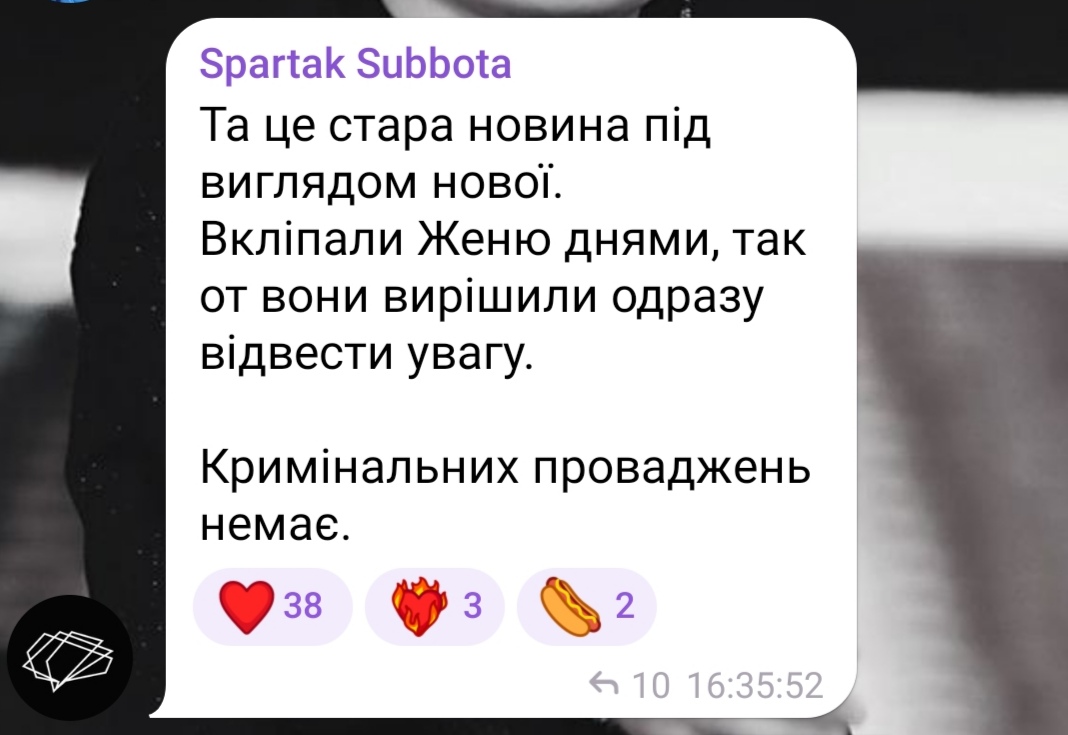 Сам Спартак цю інформацію спростував у себе в телеграм-каналі