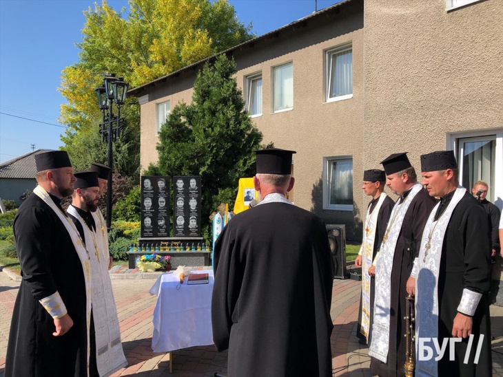 Опісля, священники освятили меморіальну дошку та помолились за Героїв. Присутні поклали квіти до меморіалу.