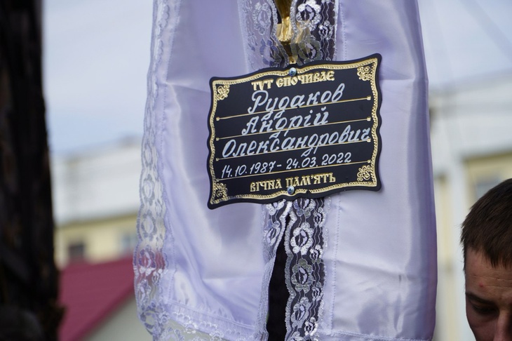 Прощання з Андрієм Рудаковим відбулось у храмі Віри, Надії та Любові, де чин похорону відслужили священнослужителі отець Євген та отець Тарас. Скорботний кортеж з тілом воїна навколішках зустріли рідні, друзі, бойові побратими загиблого, представники місцевої влади, небайдужі містяни.