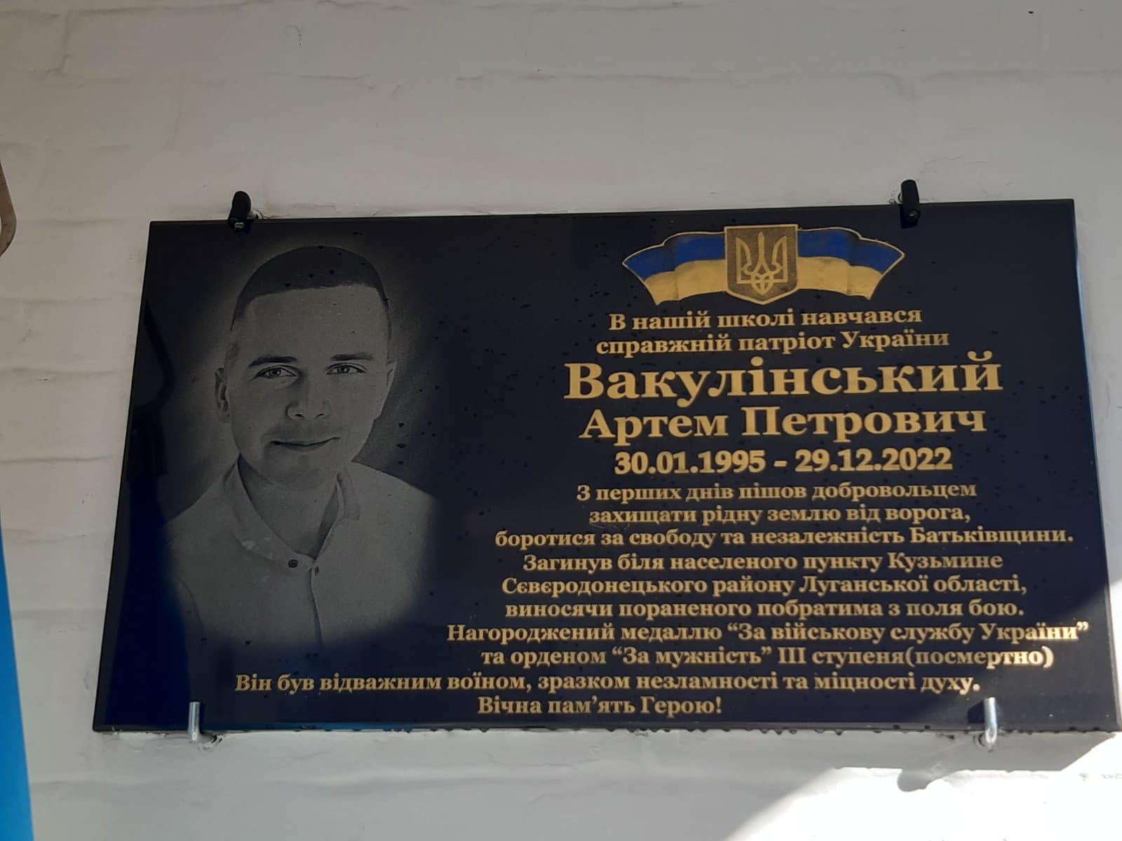 29 вересня у Жорнищенському ліцеї Олицької громади відбулося урочисте відкриття меморіальної дошки захиснику України, відважному воїну та справжньому патріоту Вакулінському Артему Петровичу.