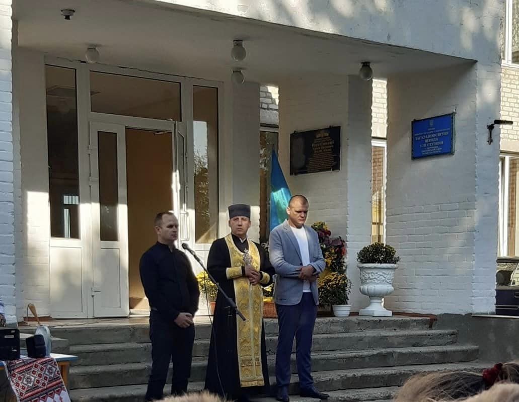 Право відкрити меморіальну дошку було надано матері та дружині Героя. Після чого Настоятель храму провів поминальну молебень та освятив меморіальну дошку.