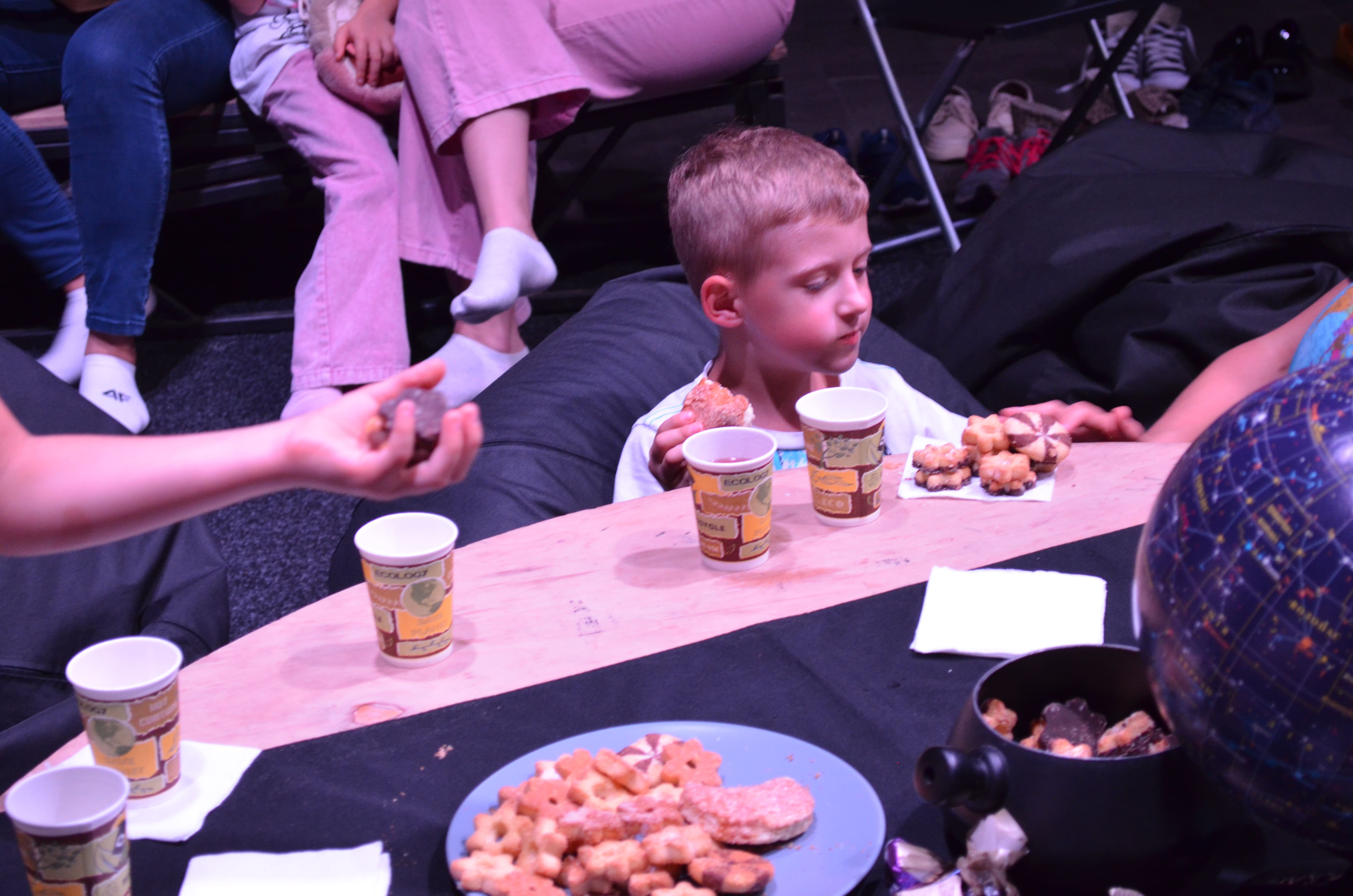 Юні відвідувачі охоче ділились враженнями після перегляду фільму про зірки. Семирічний Максим прийшов з мамою, він розповів, що йому найбільше сподобався фільм та екскурсія космосом. Хлопчику сузір’я були схожі на сюрікен (ред. японська метальна зброя прихованого носіння). На події можуть приходити діти віком від 8-10 років.