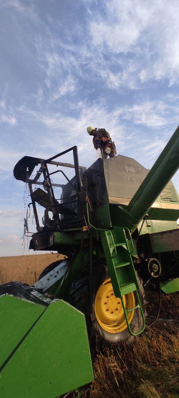 «Коли рятувальники приїхали на місце події - вогонь поширився на двигун та кабіну комбайна. Фахівці ДСНС на гасіння пожежі подали 1 водяний ствол», - йдеться у дописі.