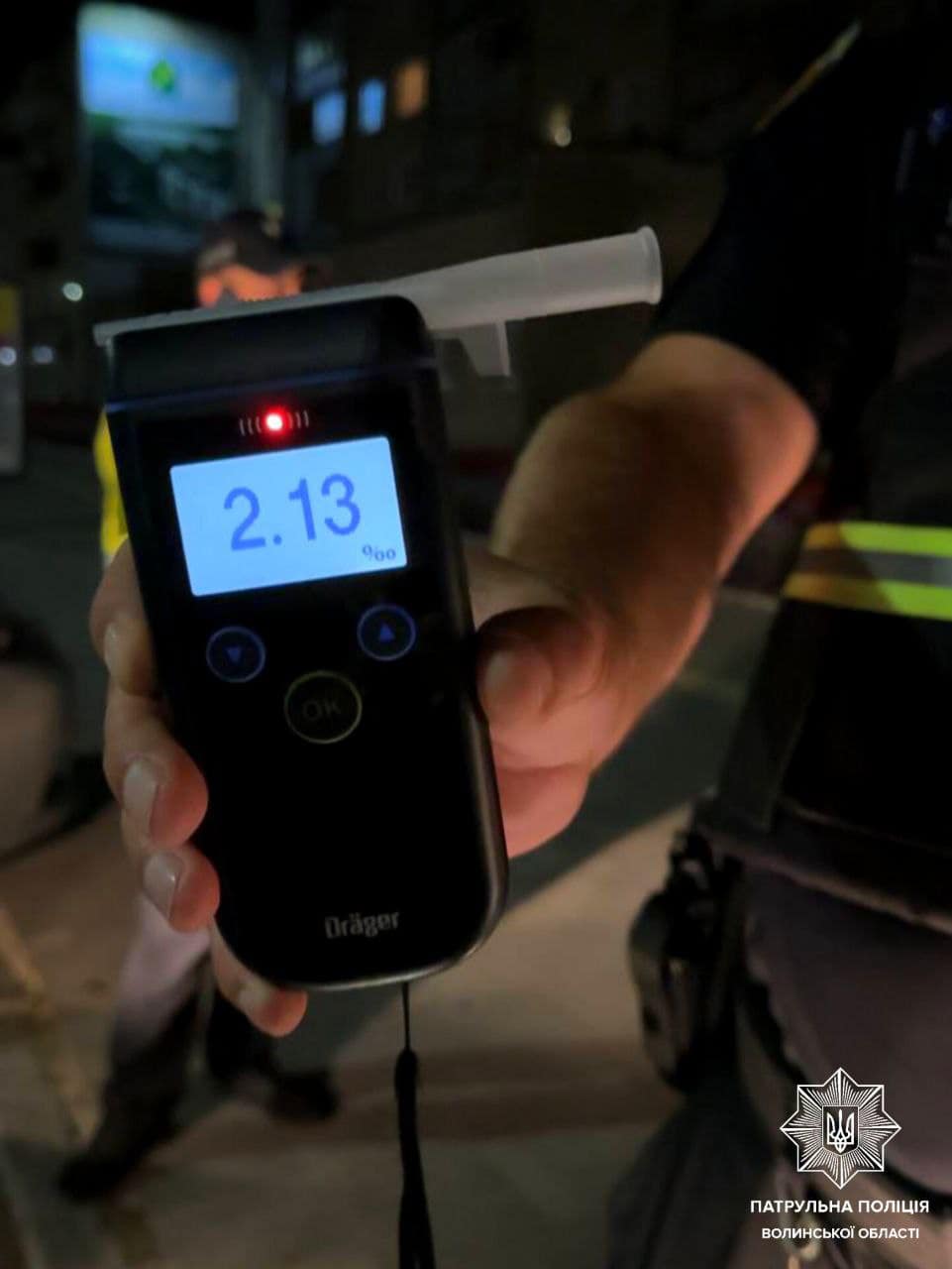 Після зупинки транспортного засобу інспектори встановили, що 36-річний керманич перебуває у стані сп’яніння: «драгер» показав результат, який перевищив допустиму норму у 11 разів, – 2,13 проміле.