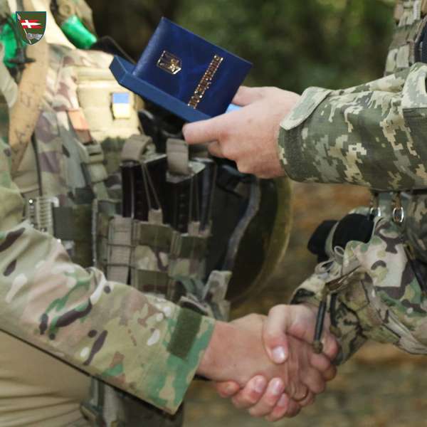 Як повідомили у пресслужбі бригади, відзнаки командира 14 окремої механізованої бригади імені князя Романа Великого, бригадні коїни, цінні подарунки, побажання витримки та сил для повного звільнення України від ворога.