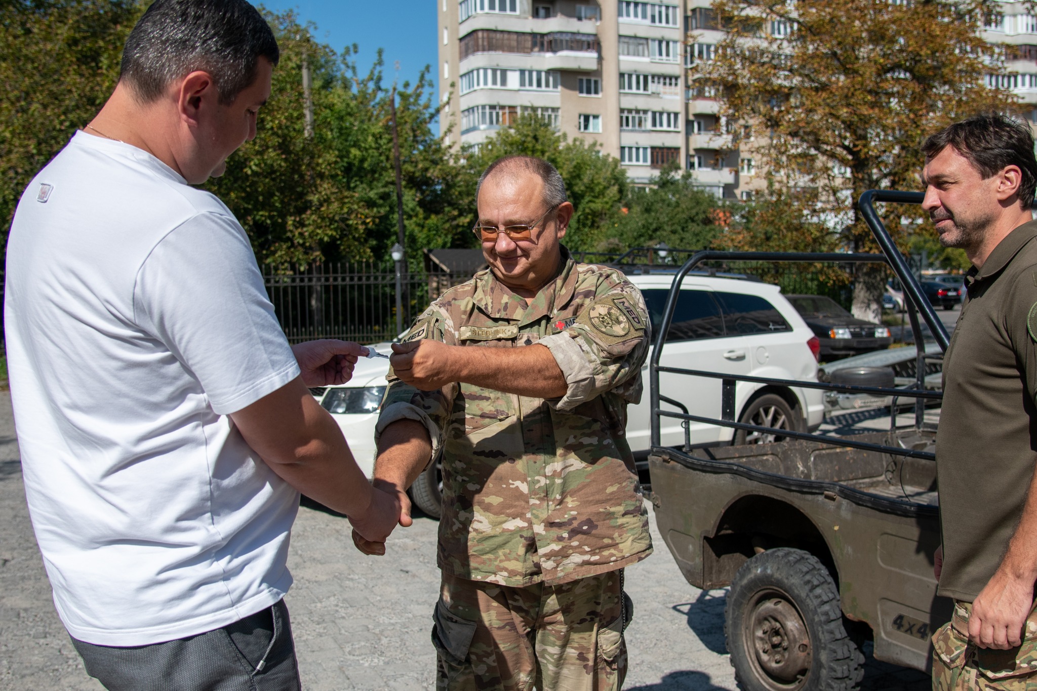 Командир медроти Всеволод Стеблюк та солдат медичного шпиталю, відомий український футболіст Владислав Ващук подякували керівництву та працівникам облради за підтримку. Вони зауважили, що із запитом звернулися на «батьківщину» цієї машини і не прогадали.