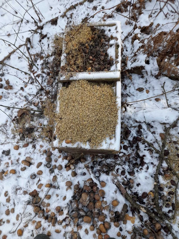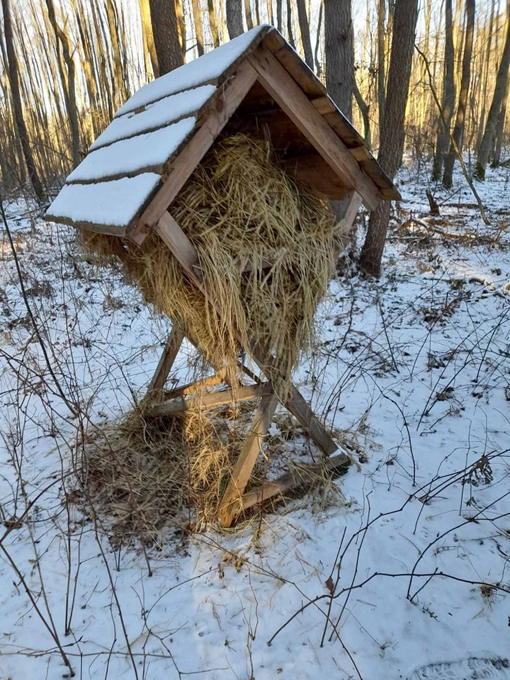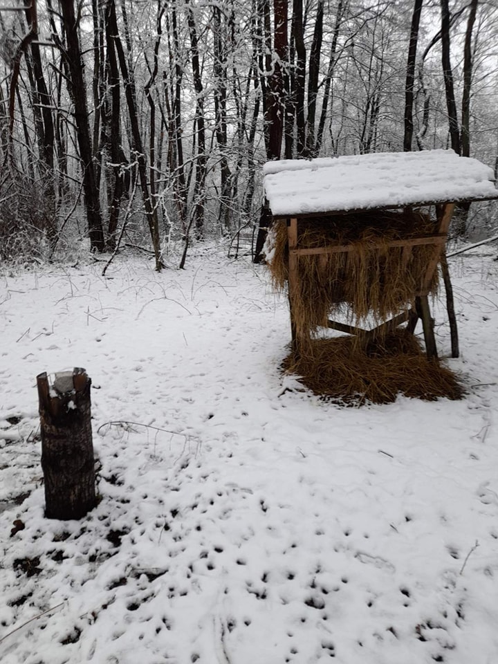 На території усіх лісництв працівники регулярно поновлюють підгодівельні майданчики: розкладають сіно, підвішують віники з листяних порід дерев, насипають зерно, картоплю та викладають солонці.