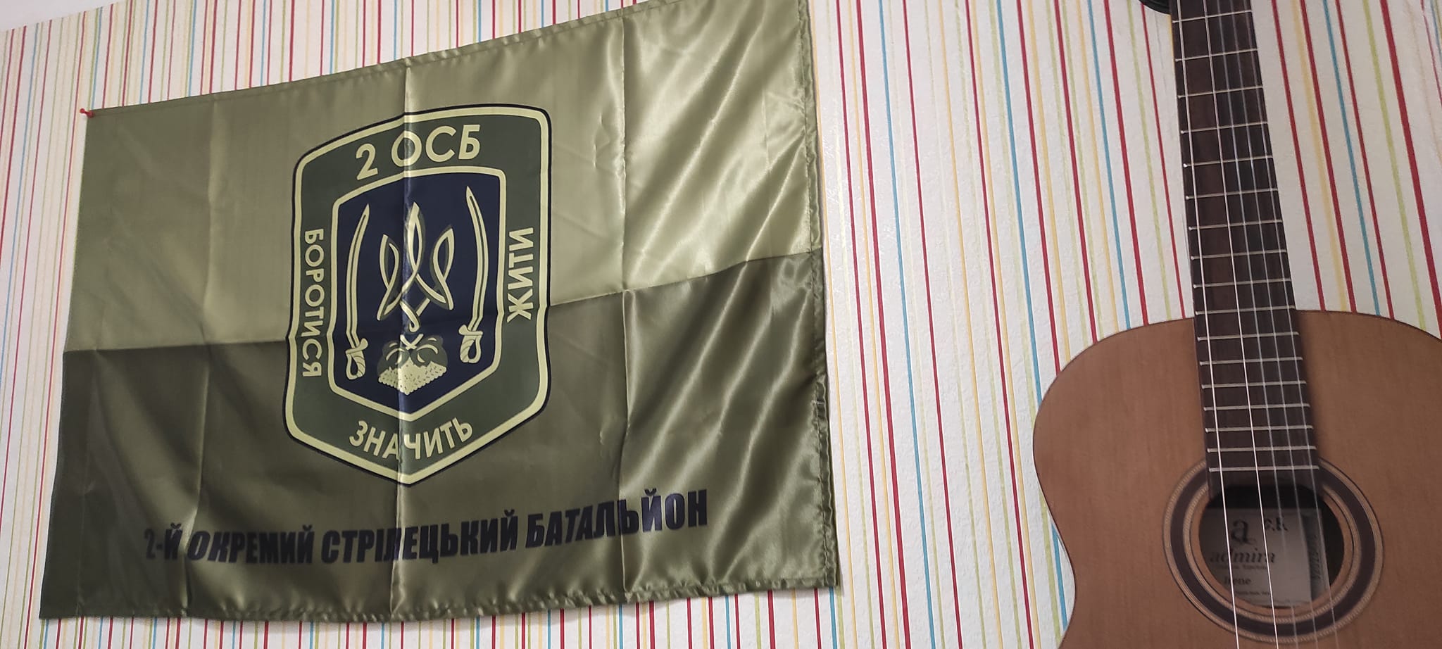 Найцінніший подарунок, найпрестижніший диплом часу війни зробили воїни ЗСУ учням класу гітари Рожищенської музичної школи – передали стяг свого батальйону.