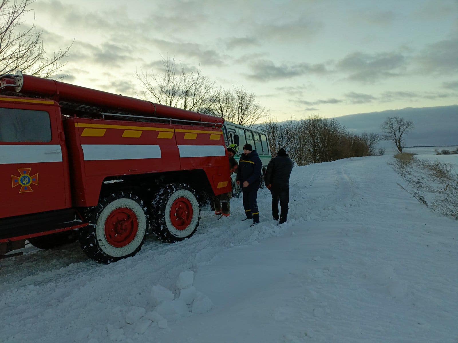 Сьогодні о 10:22 до служби порятунку 101 надійшло повідомлення про те, що між с. Бубнів та с. Руснів застряг рейсовий автобус в сніговому заметі.