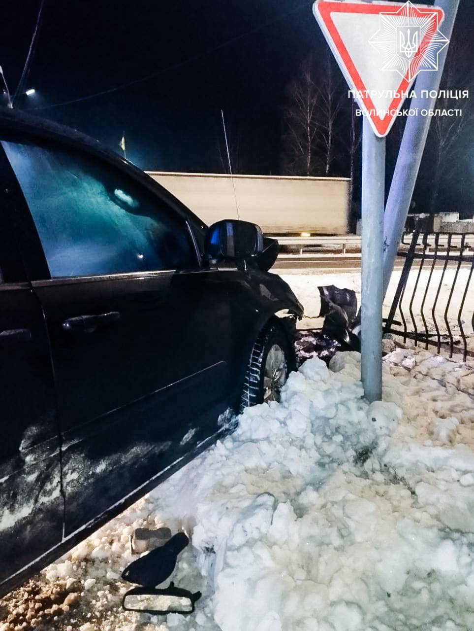 На Волині п'яний водій «пролетів» повз патрульних та протаранив дорожній ліхтар.