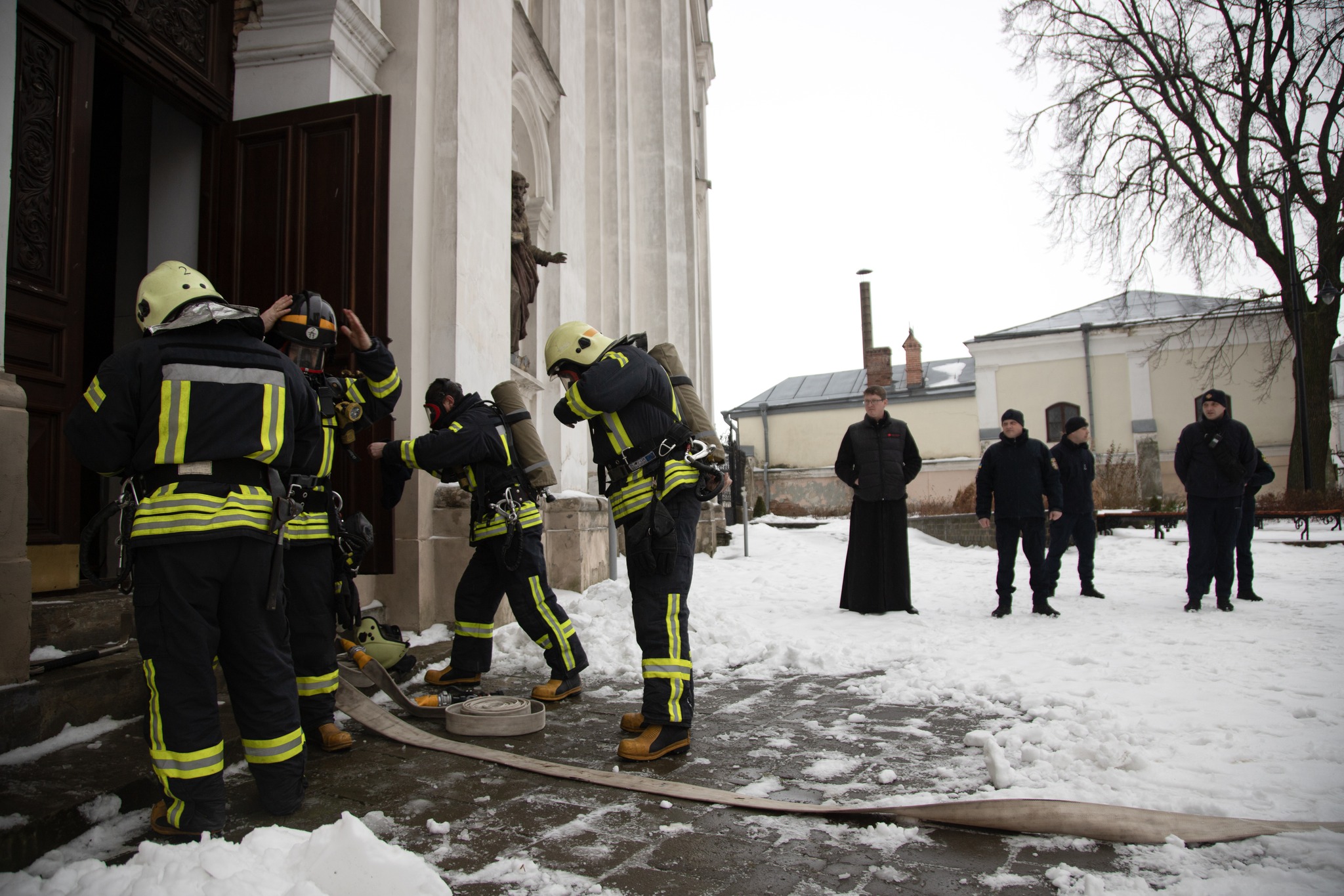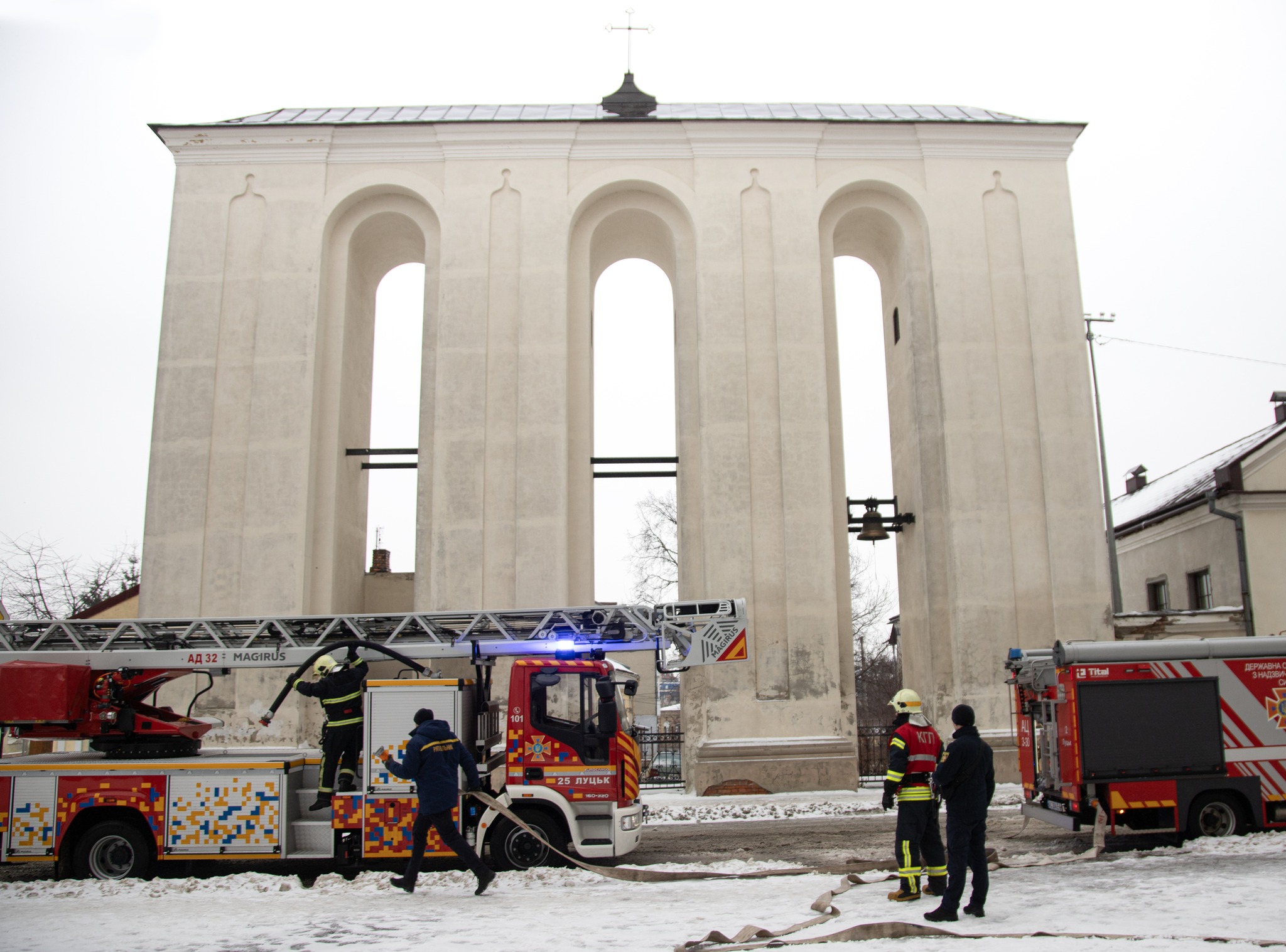Сьогодні, 18 січня, о 11:02 год до служби порятунку «101» надійшло повідомлення про пожежу в концертному залі костелу святих апостолів Петра і Павла, що знаходиться на вул. Кафедральній у Луцьку. Такою була легенда тактико-спеціальних навчань черговими караулами 25-ї та 2-ї державних пожежно-рятувальних частин м. Луцька.