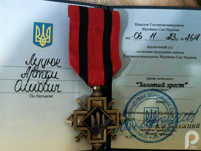 Боєць з Рожища Артем Луцюк отримав високу державну нагороду - нагрудний знак «Золотий хрест».