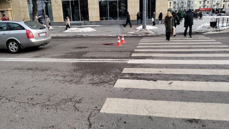 На нерегульованому пішохідному переході біля центрального універмагу в Луцьку авто збило 65-річного чоловіка. Травмованого забрала швидка.