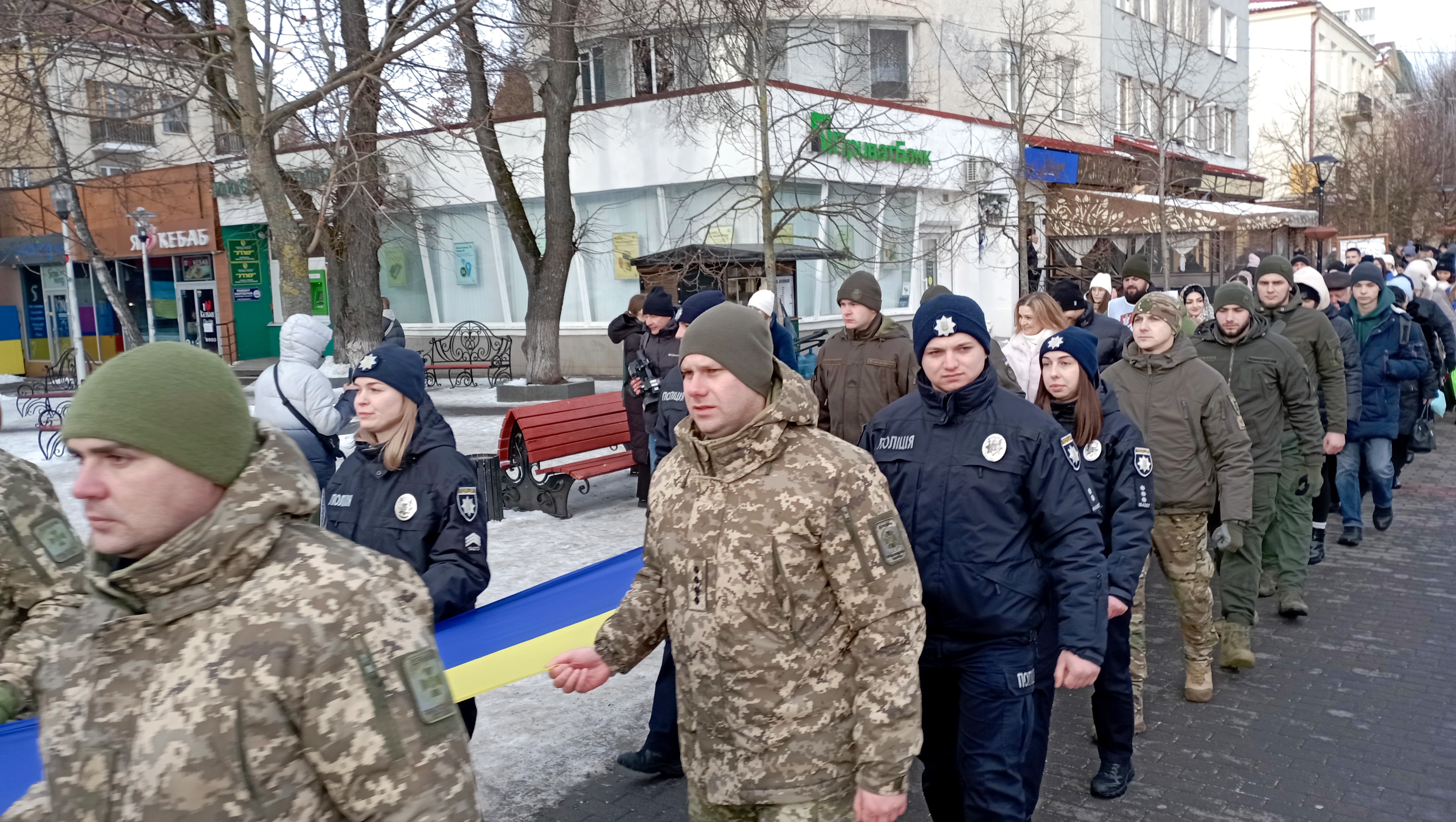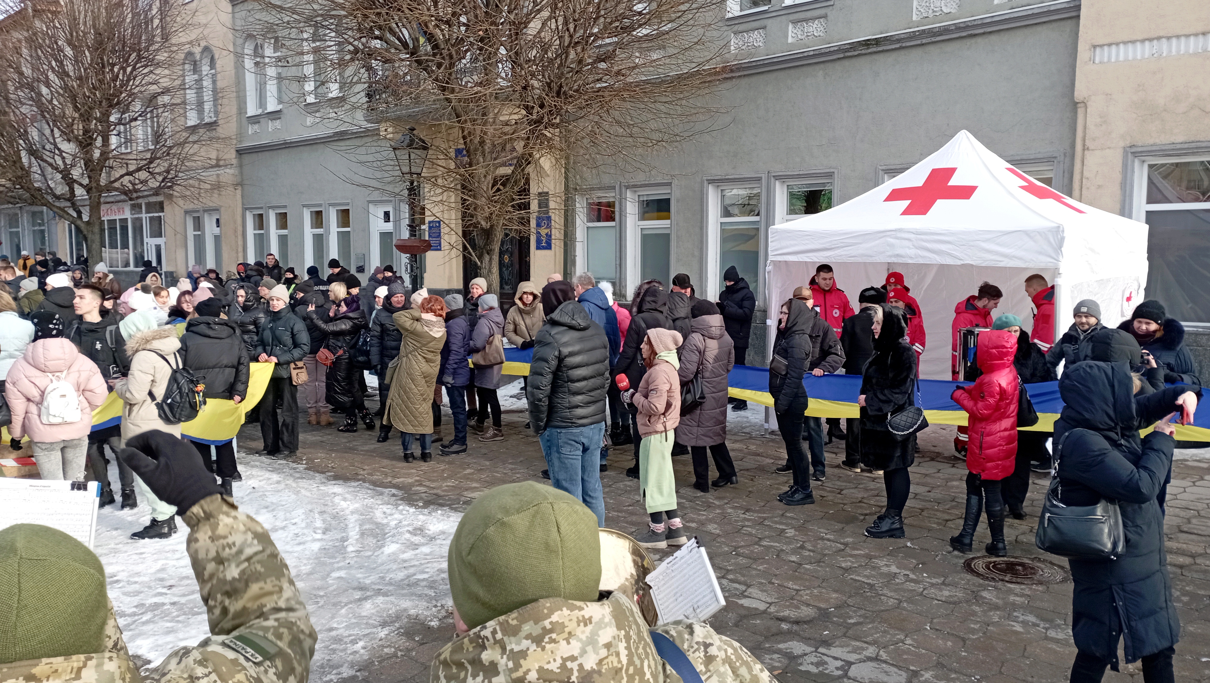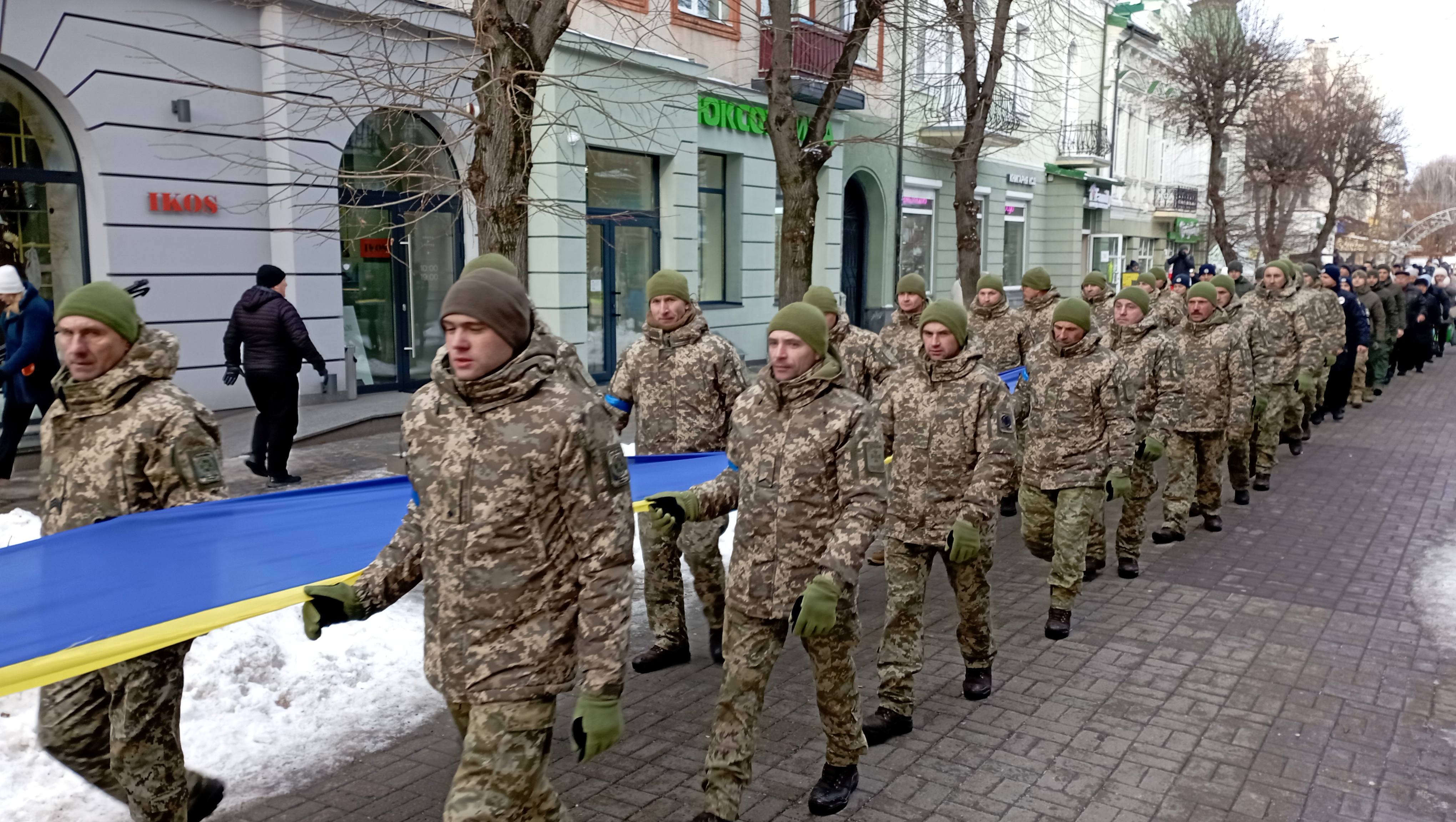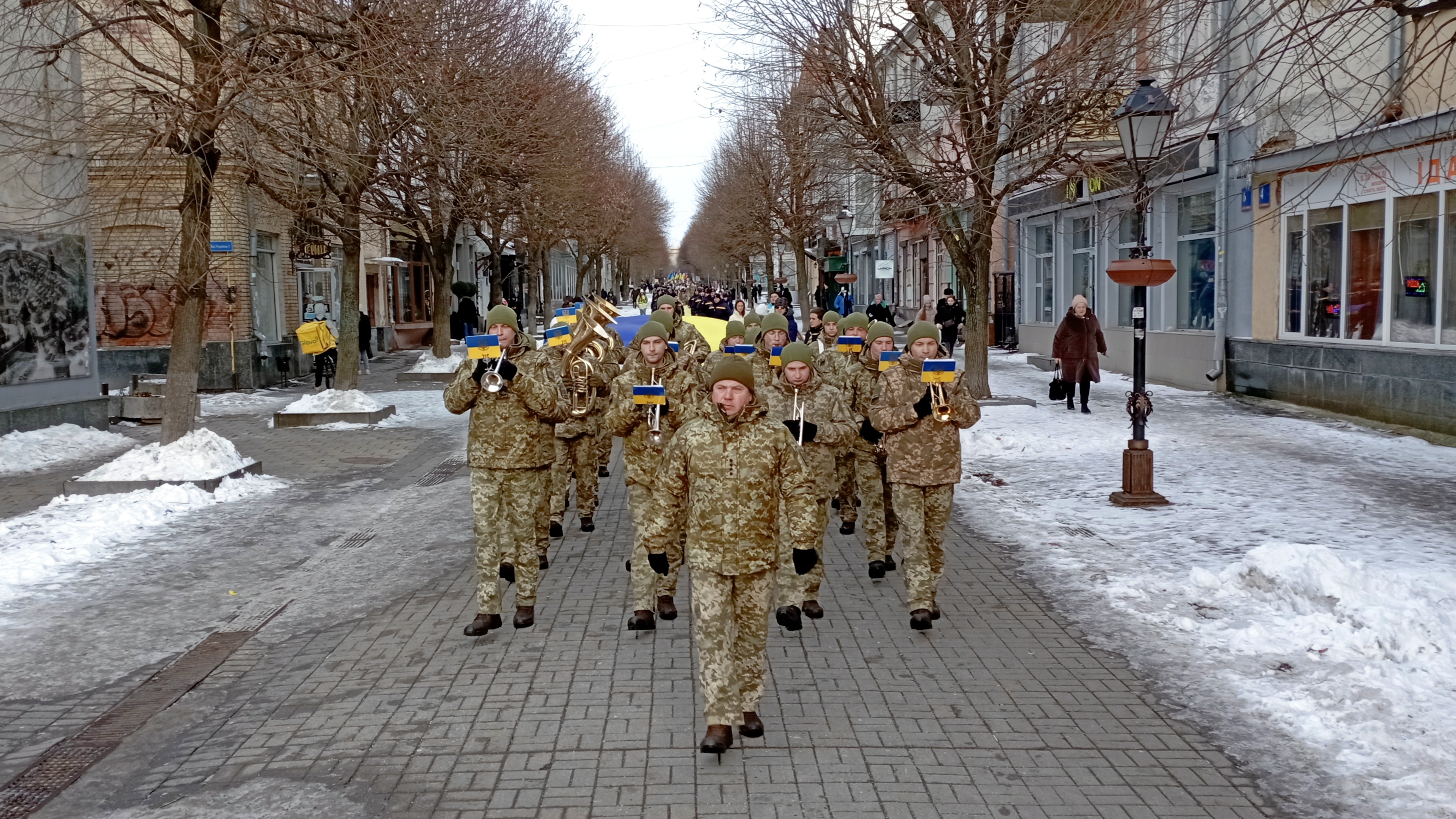 Сьогодні урочистий захід відбувся пізніше через повітряну тривогу. Попри це на Театральному майдані зібралась величезна кількість людей, щоб відзначити цю подію.