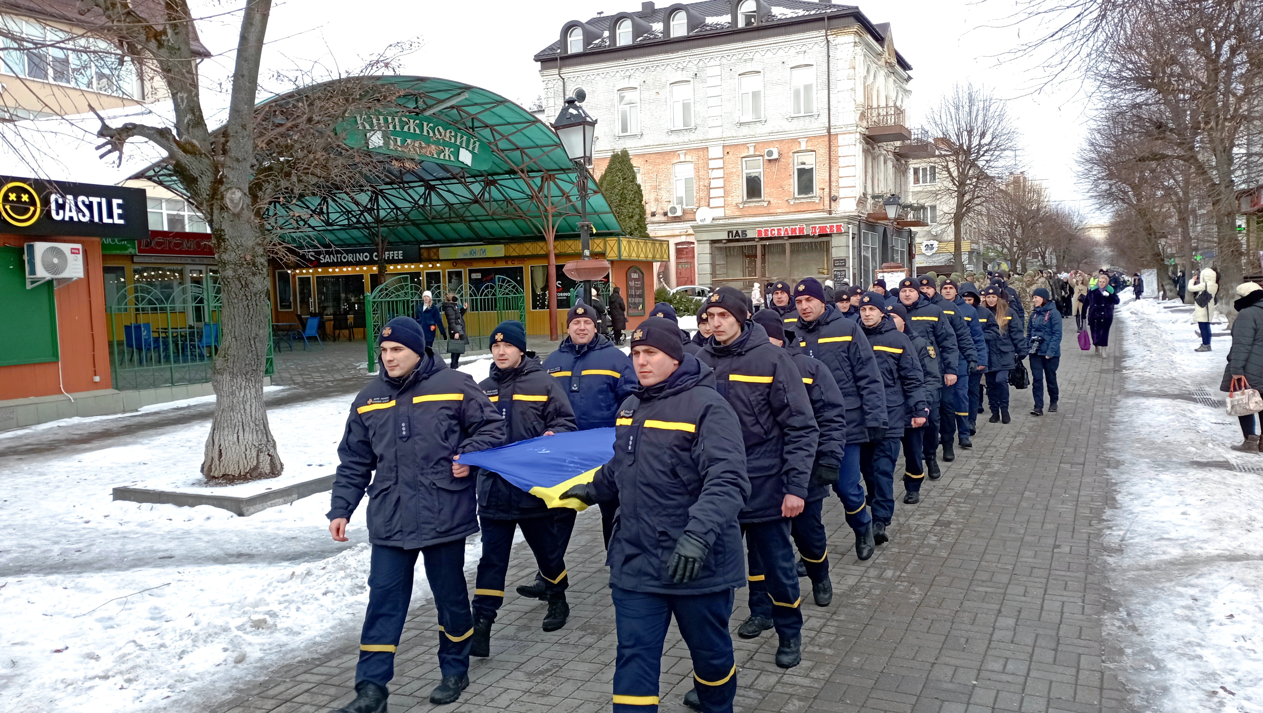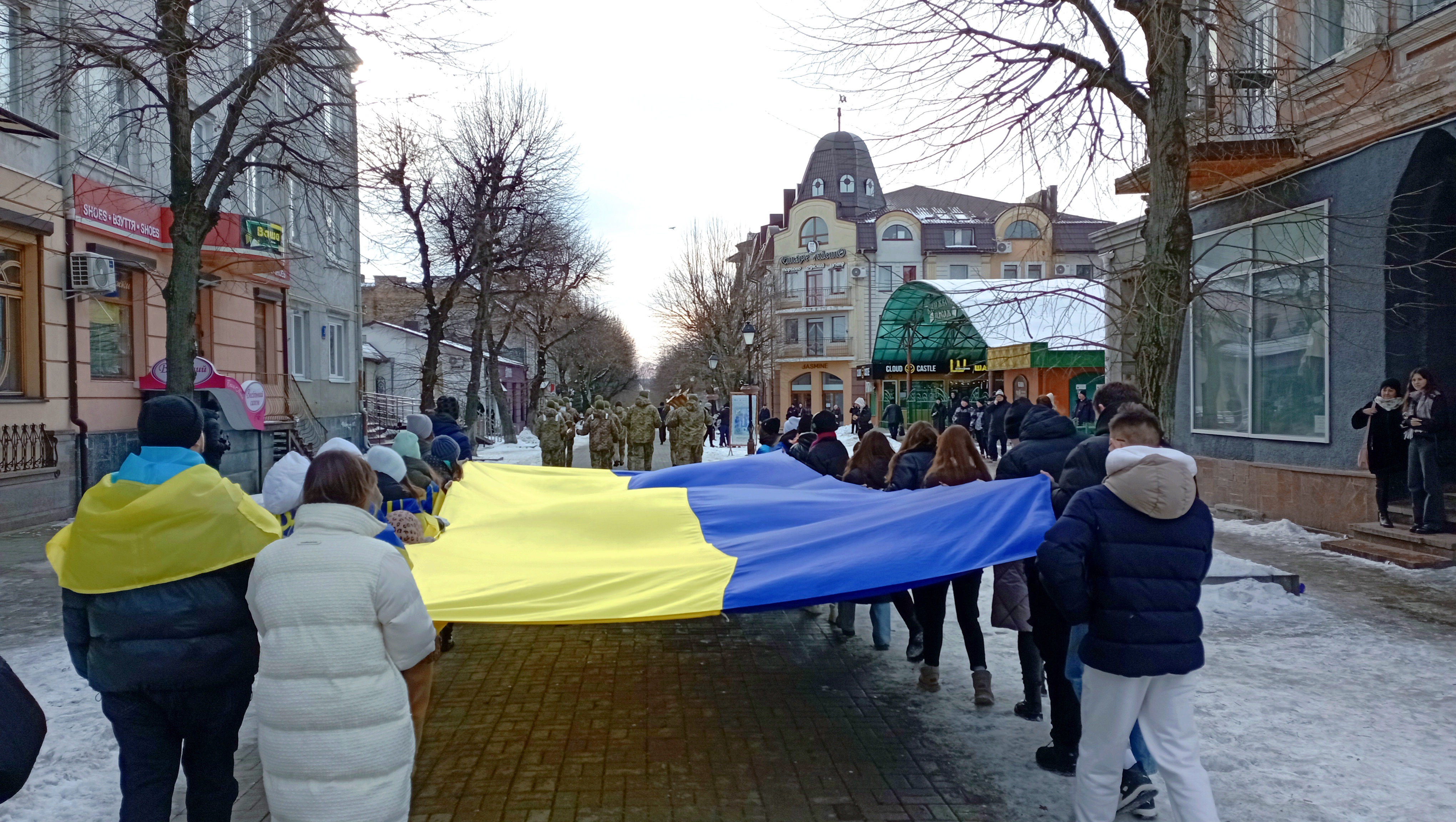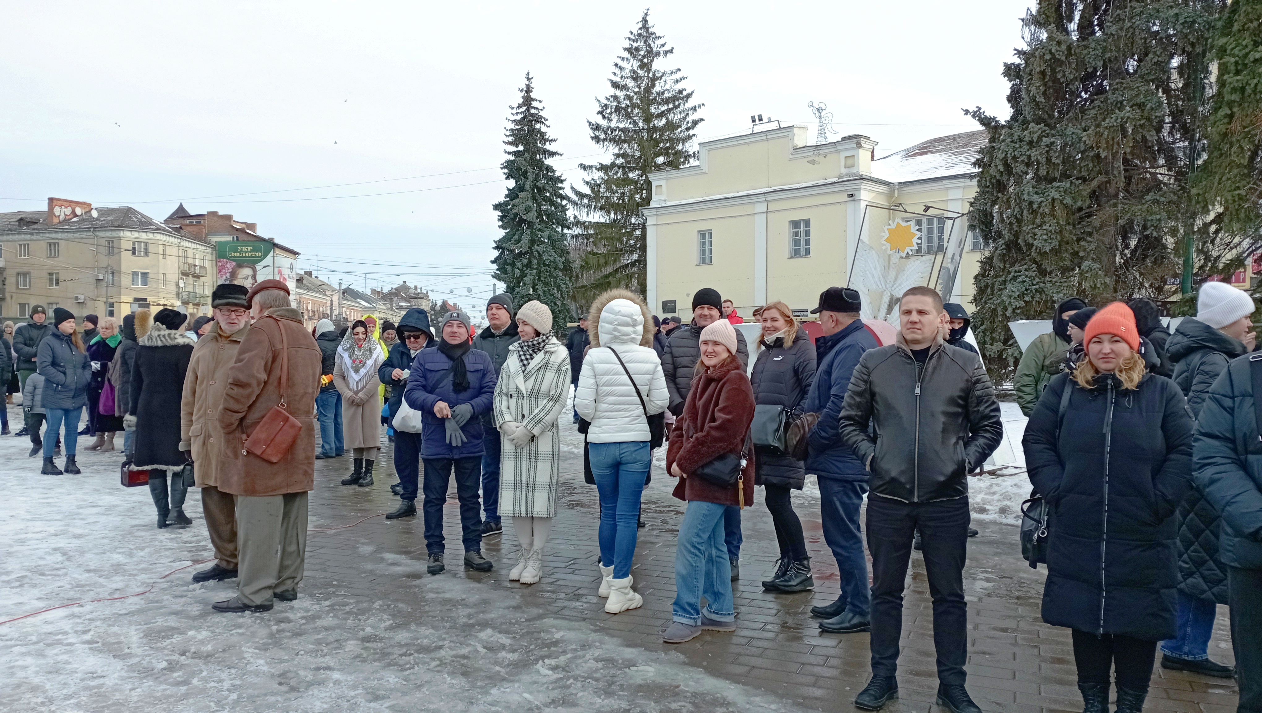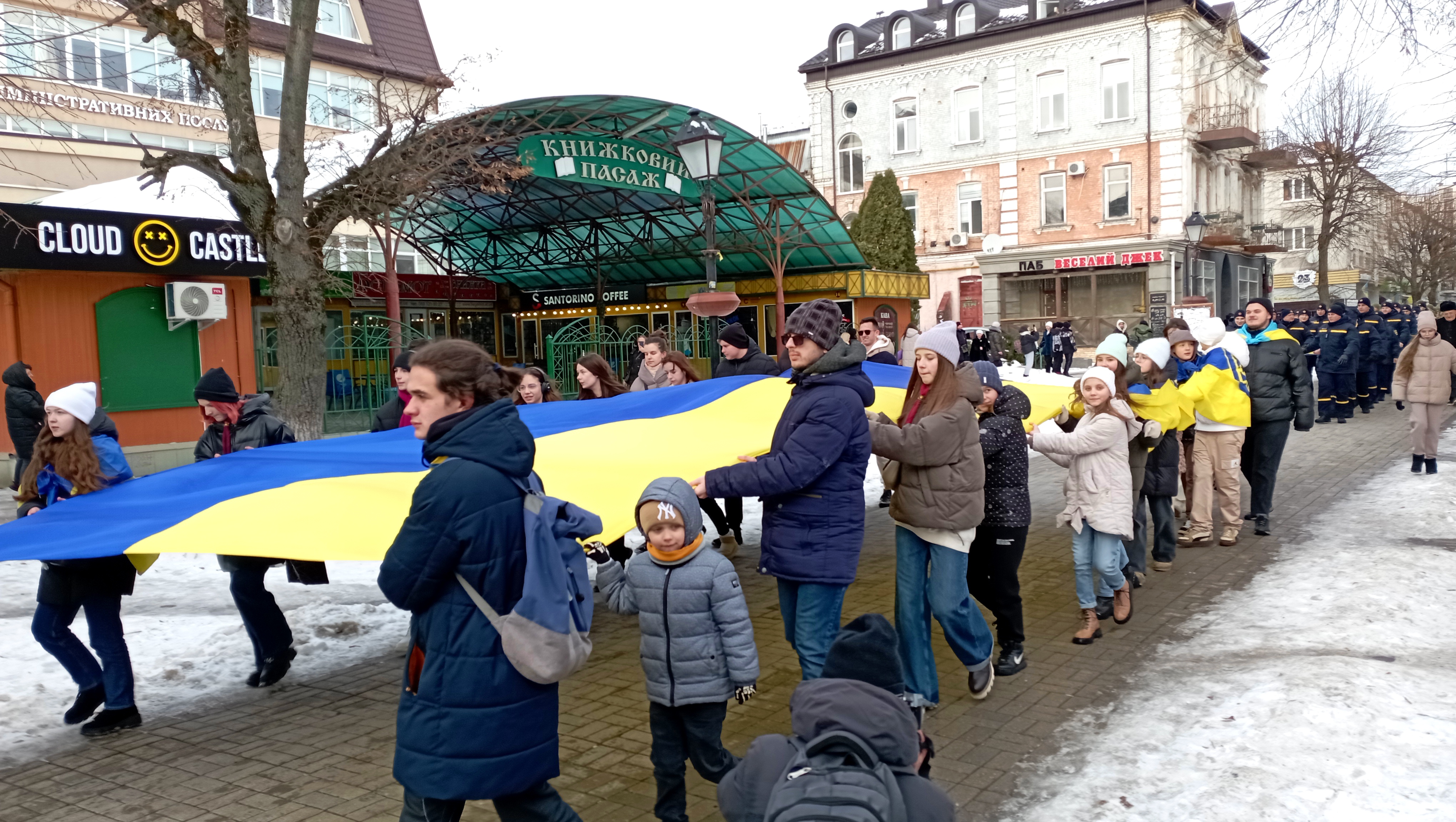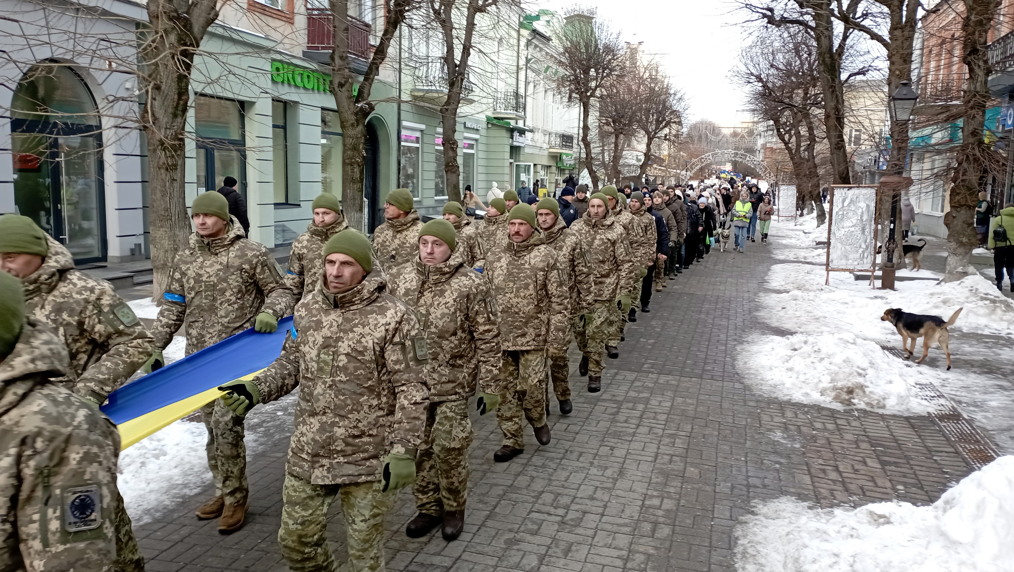 Сьогодні урочистий захід відбувся пізніше через повітряну тривогу. Попри це на Театральному майдані зібралась величезна кількість людей, щоб відзначити цю подію.
