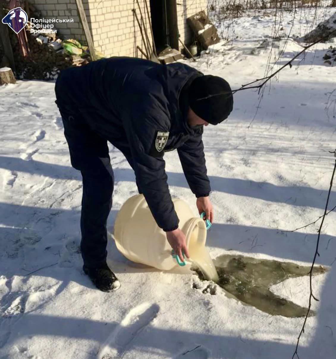 Фото того, як поліцейські вилучають і знищують алкоголь з фейсбук-сторінки Поліцейські офіцери громади у Волинській області