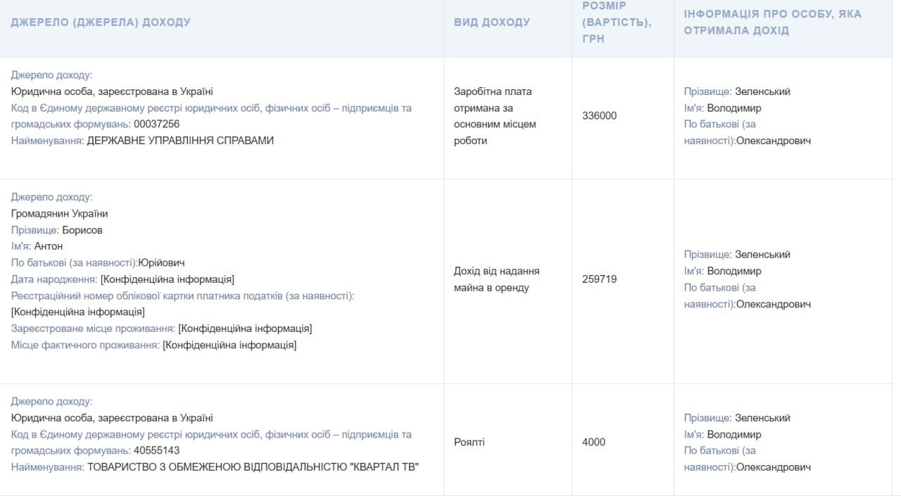 Доходи родини Президента за 2022 рік зменшилися у зв’язку з тимчасовим припиненням договорів оренди на території України внаслідок початку повномасштабної агресії Росії проти нашої країни.