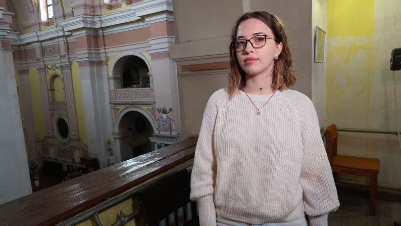 Вчиться грі на органі у Петра Сухоцького 19-річна Анжеліка Очкуренко. Дівчина – переселенка з міста Охтирка Сумської області. Повномасштабна війна застала її в Харкові, куди вона поступила навчатися до музичного коледжу.