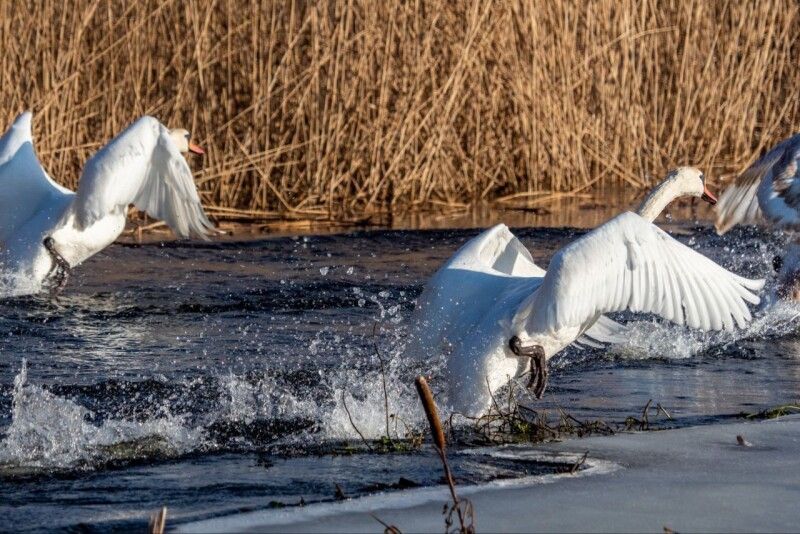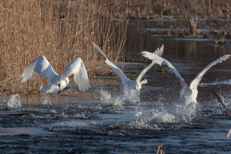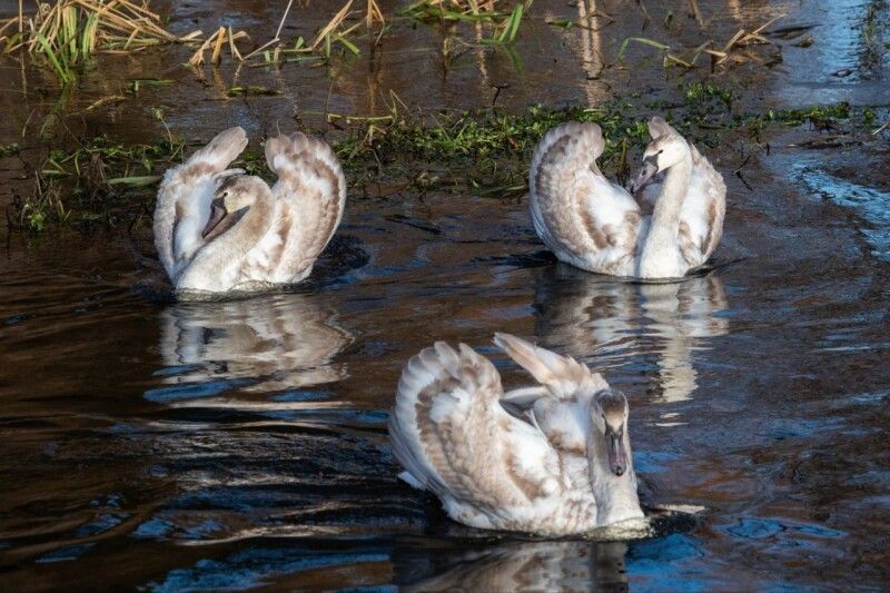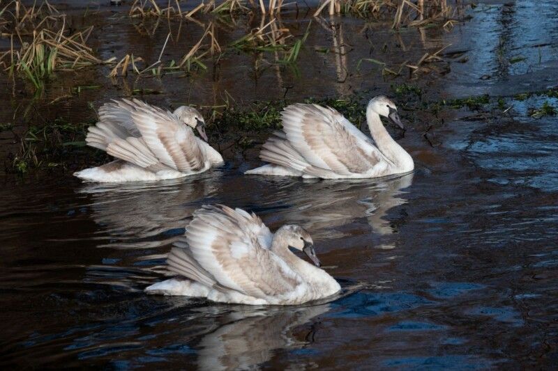 Цих красивих лебедів зафіксували на річці Луга, яка протікає у межах Володимирського району Волинської області