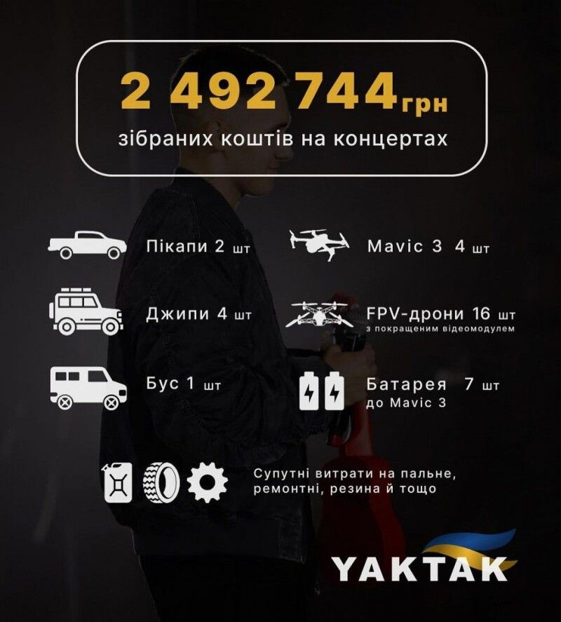 Вокаліст із Волині Ярослав Карпук ( Yaktak) успішно зібрав понад 2,5 мільйона гривень на підтримку Збройних Сил України.