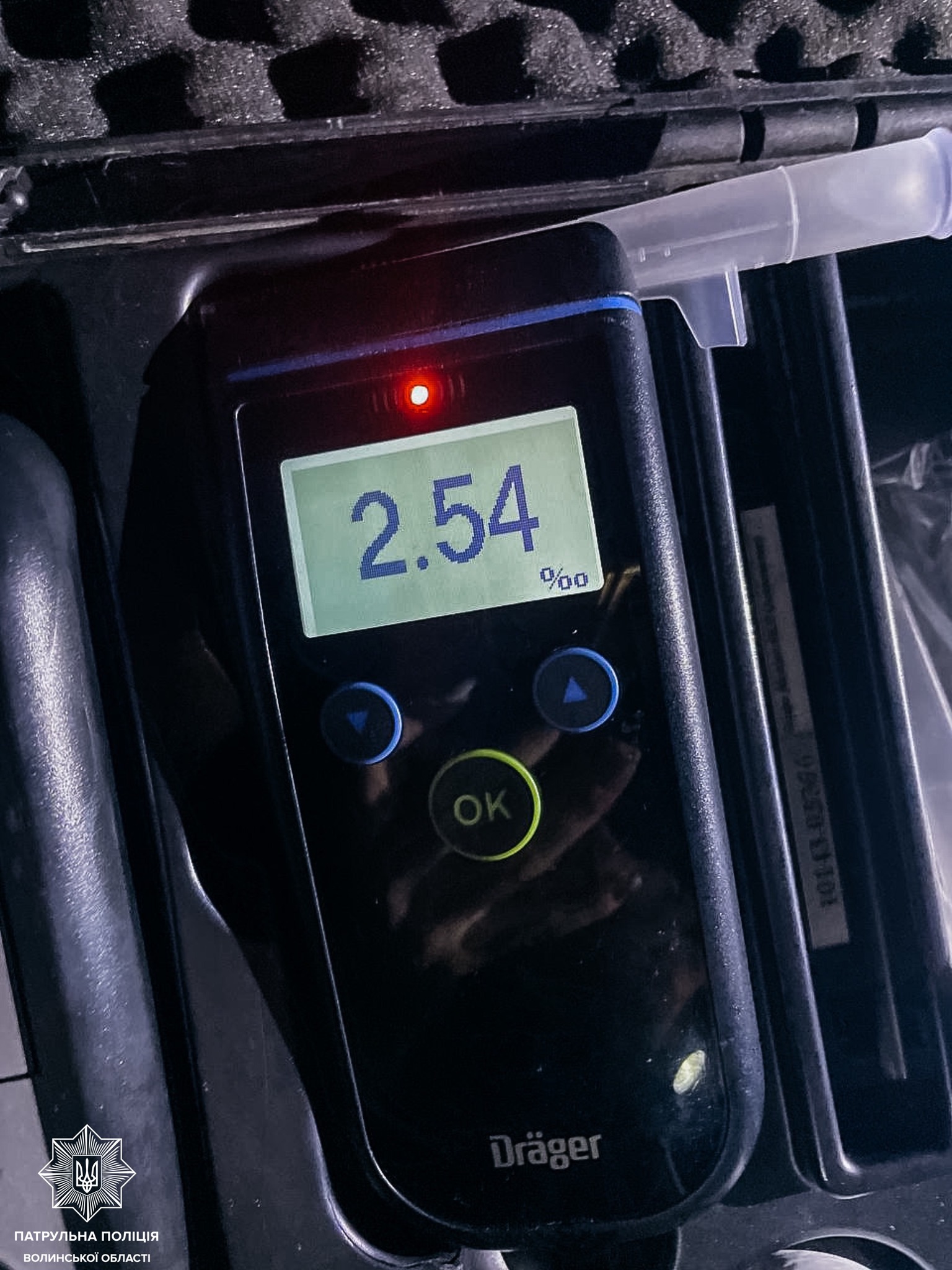 «Під час спілкування із винуватцем ДТП поліцейські виявили явні ознаки алкогольного сп’яніння. Чоловік погодився пройти освідування на місці події. Результат огляду на приладі Драгер становив 2, 54 проміле, що перевищує максимально допустиму норму у майже 13 разів», – йдеться у дописі.