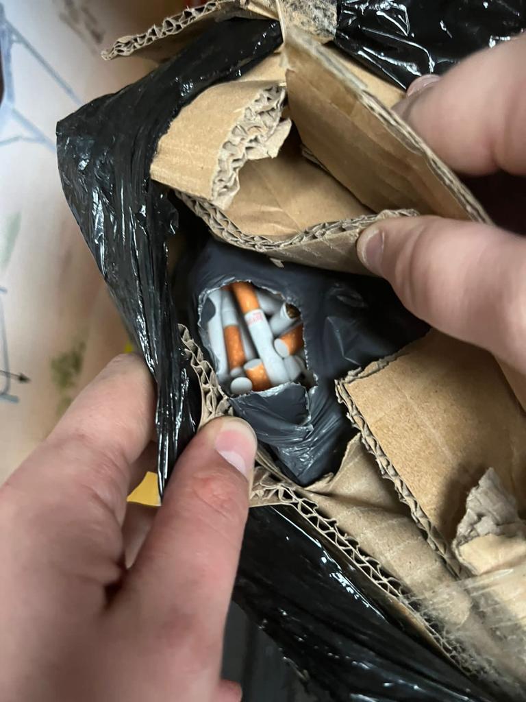 Як з'ясувалося, чоловік отримав через поштове відділення дев'ять ящиків сигарет Mustang та Parliament загальною вагою понад 130 кілограмів. Усі вони були без відповідних пакувань і марок акцизного податку України.
