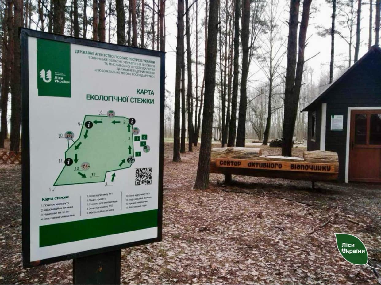 Поблизу Луцька найбільш популярна стежка в гаразджинському лісі. Прямо над дорогою. З відпочинковими та ігровими зонами, лавочками, одна з яких має зарядний пристрій для телефона.