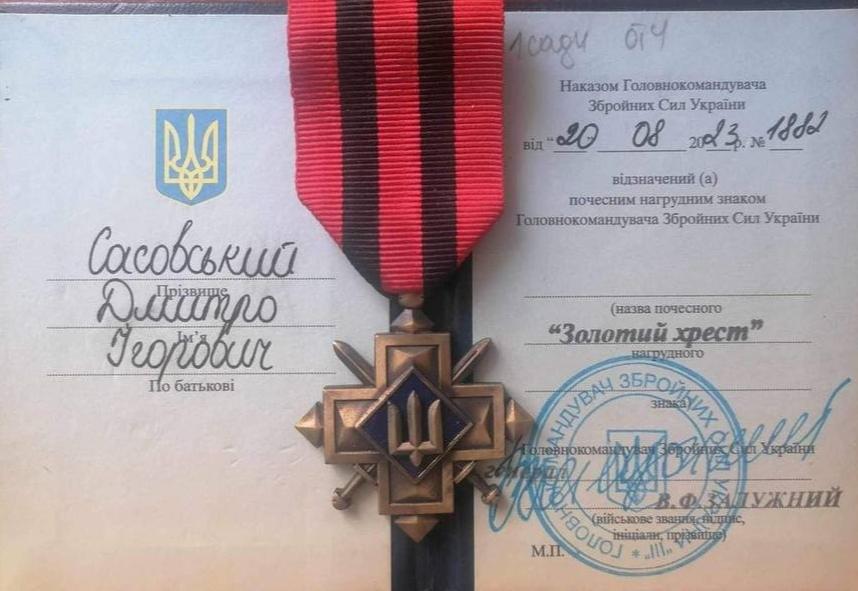 23-річний солдат Дмитро Сасовський проявив особисту мужність і героїзм, стійкість та рішучість при виконанні військового обов’язку та був удостоєний відзнаки Головнокомандувача ЗСУ за відмінне виконання бойових завдань на передових «гарячих» позиціях Куп'янського напрямку.
