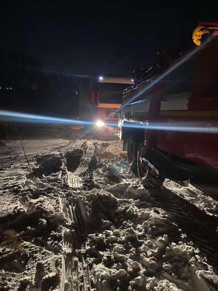 У Луцькому районі на дорозі Горохів – Берестечко пізно ввечері вантажівка застрягла у сніговому заметі й перекрила рух автотранспорту – з пастки її витягнули рятувальники.
