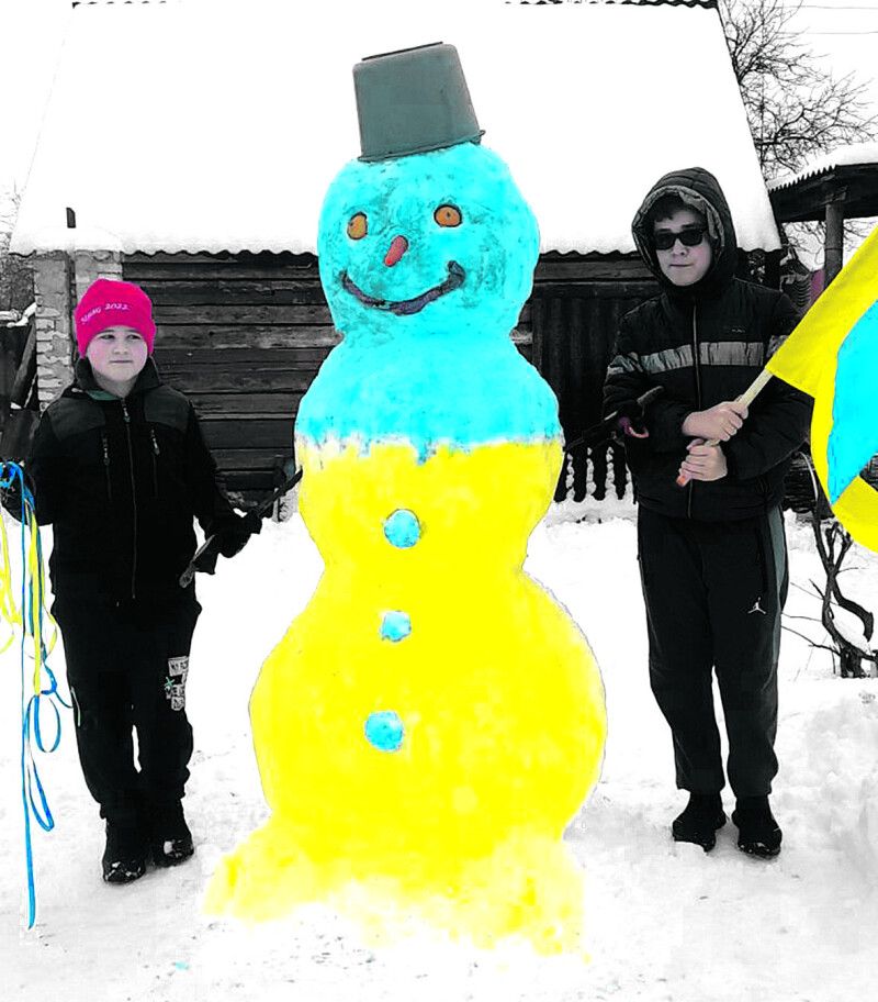 …Доповненням до нашої розмови стали фотознімки – промовиста ілюстрація до того, як живеться сімейству переселенців на Любешівщині. Одні кадри розповідають, як мама із синами, Сергієм та Данилом, збирала влітку чорниці. Інші свідчать про те, що вже два Великодні відзначили у селі Зарудче. А ще є на світлинах чимала снігова баба, яку хлопці поставили торік на городі біля хати, розмалювавши жовто-блакитними кольорами.