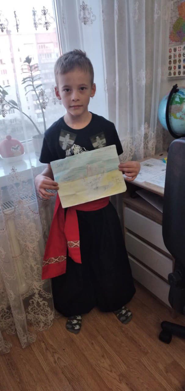 Другокласника Луцького ліцею №25 Арсена Олексюка розшукав військовий, щоб подякувати за малюнок, який учень малював для ЗСУ.