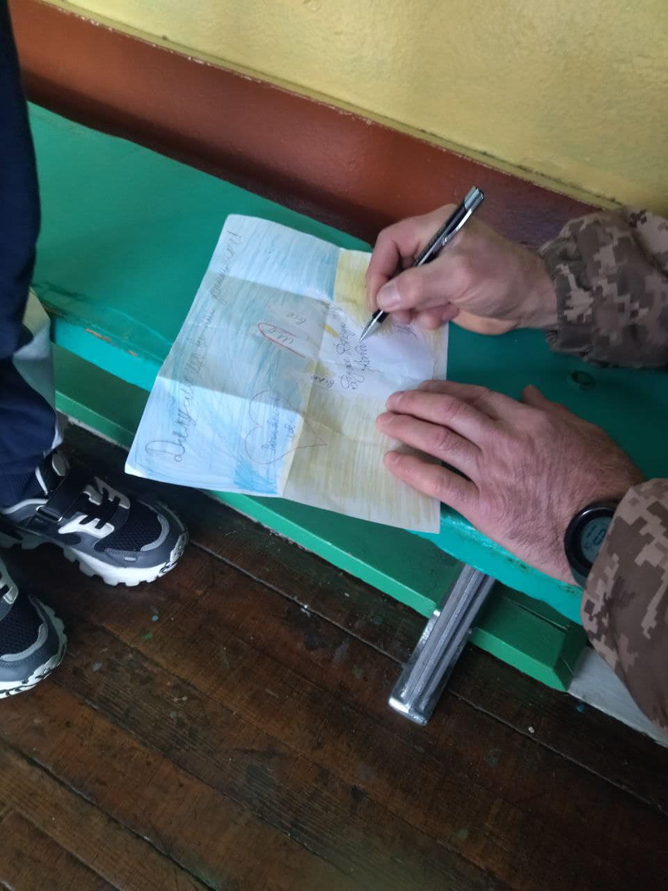 «Малюнок школяра зігрівав душу воїна та підбадьорював в години смутку. На ньому – синьо-жовтий прапор, дитяча долонька і підпис: "Дякуємо, що Ви нас захищаєте"», - йдеться у дописі.