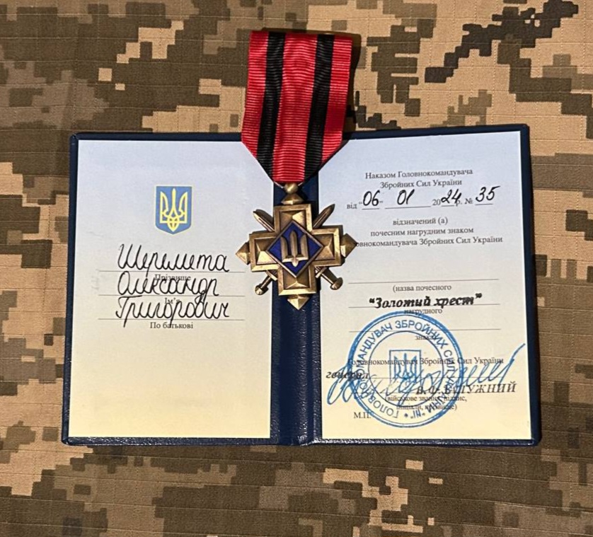 Нещодавно за свою службу він отримав нагрудний знак «Золотий хрест» від головнокомандувача Збройних сил України.
