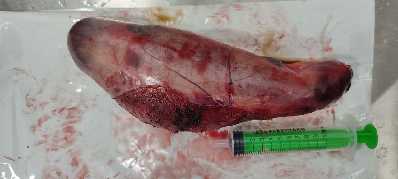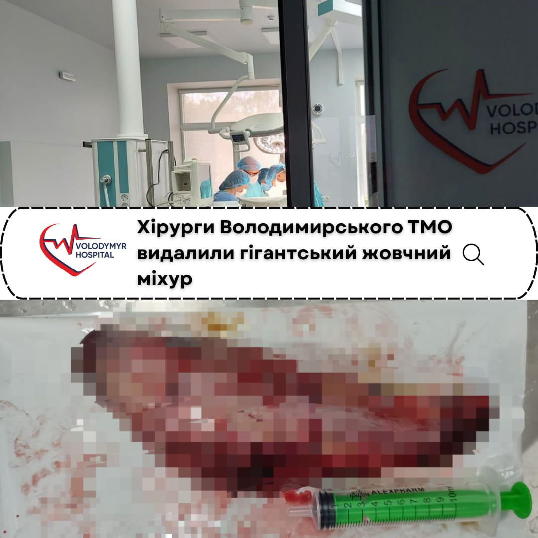 Хірурги Володимирського ТМО видалили пацієнту жовчний міхур, який мав великі розміри.