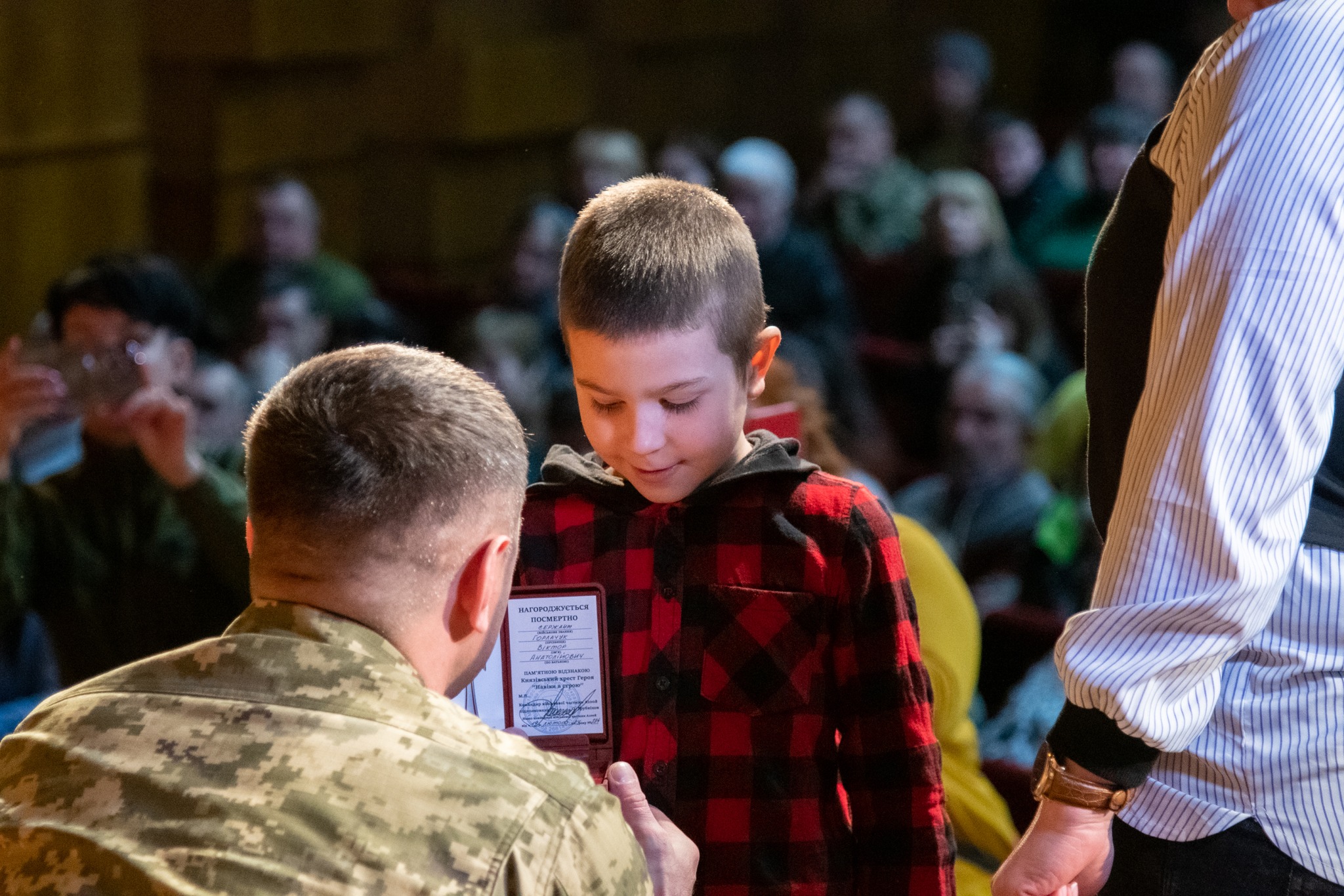 «Ще вчора я зі своїми бойовими побратимами нищив ворога на Куп’янському напрямку. Сьогодні ж стою перед вами і маю велику честь вручити пам’ятні відзнаки родинам наших Героїв, які для України зробили усе, що могли, віддавши найцінніше - своє життя», - наголосив він та запропонував усім присутнім вшанувати пам’ять про загиблих хвилиною мовчання.