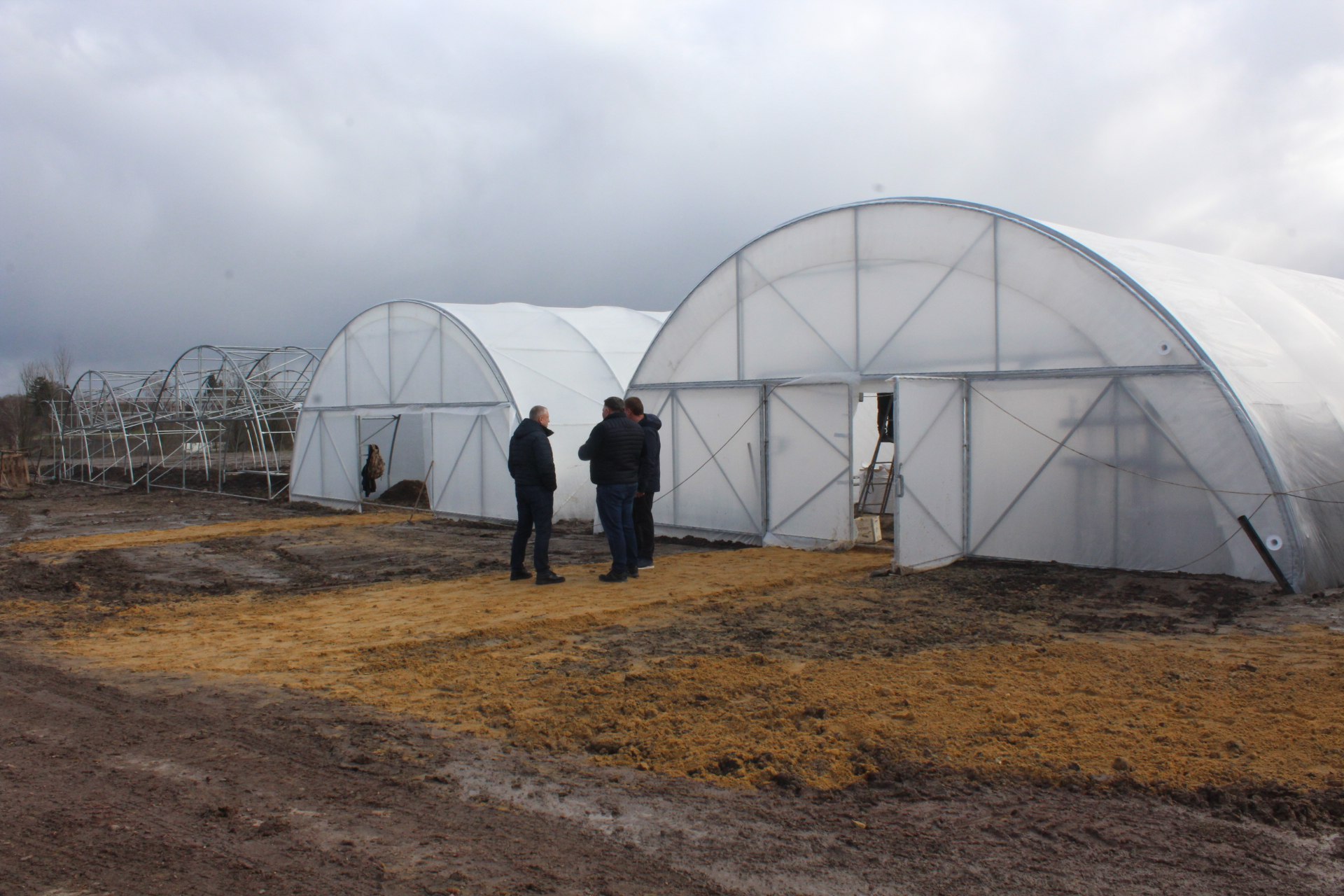 Заступник голови Волинської обласної державної адміністрації Олександр Троханенко та директор департаменту агропромислового розвитку ОДА Юрій Юрченко відвідали господарство, оглянули будівництво теплиць та закладку перших саджанців.