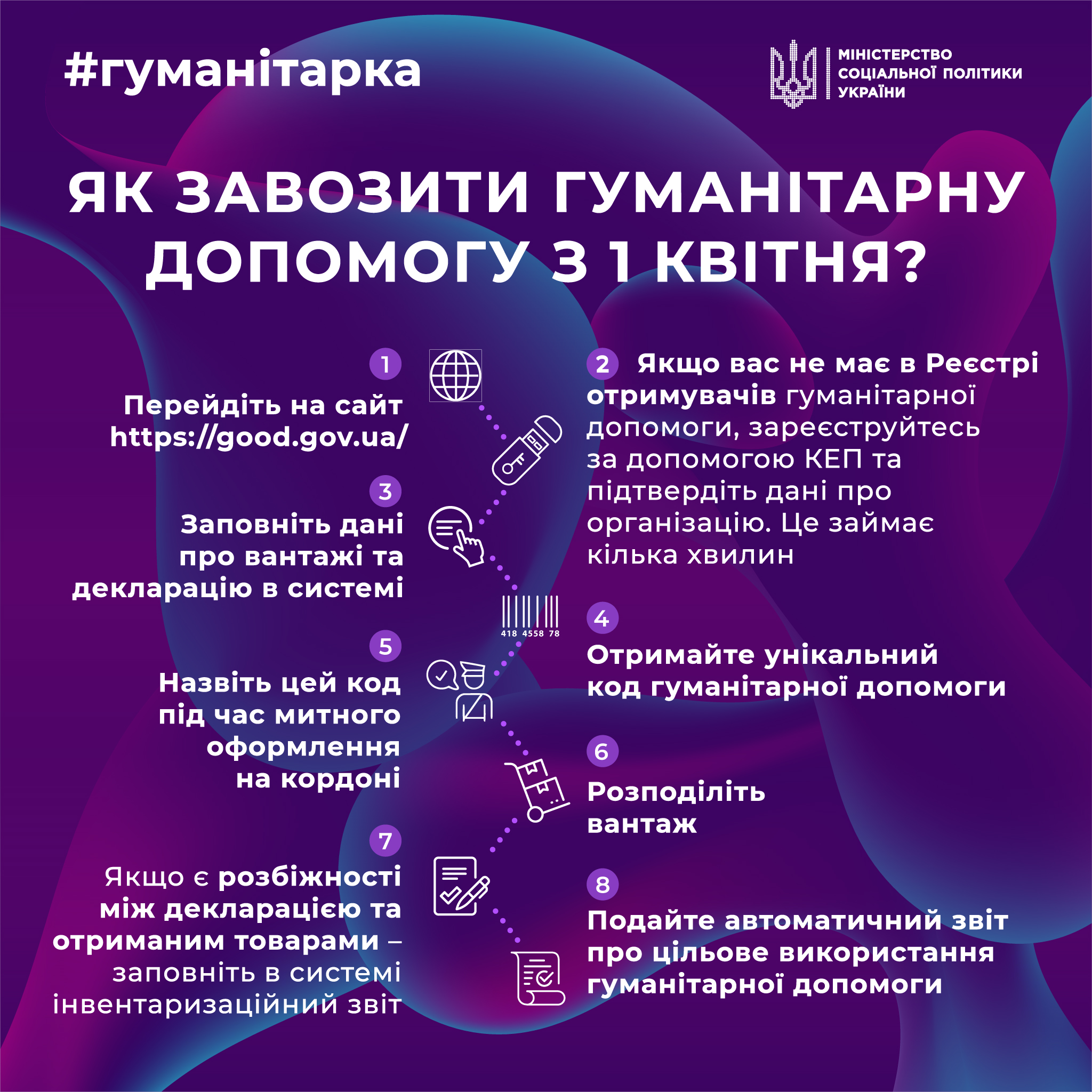 Щоб нові правила з 1 квітня не стали неочікуваними та отримувачі могли легко завезти допомогу, а українці її отримати, нагадуємо як користуватись цифровою платформою.