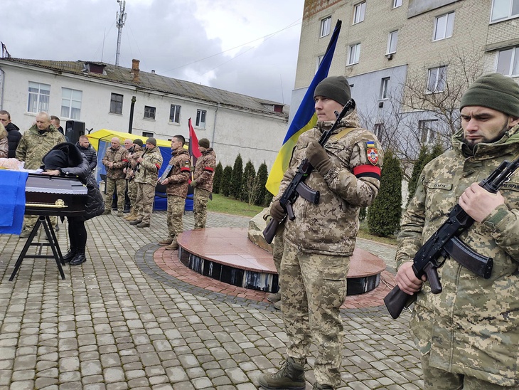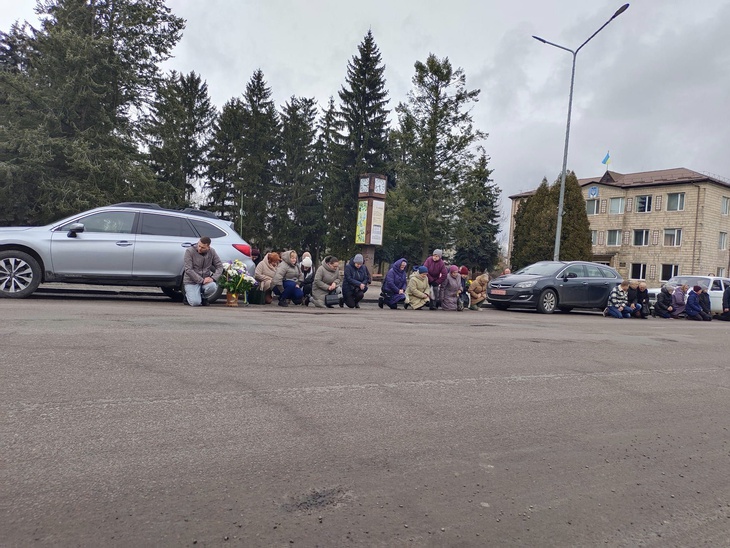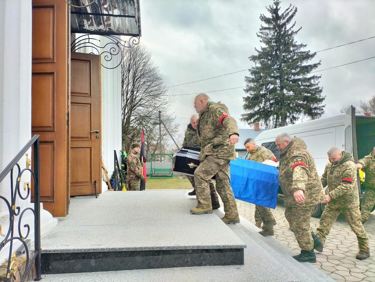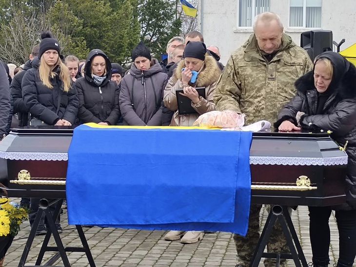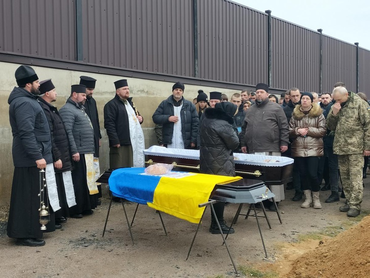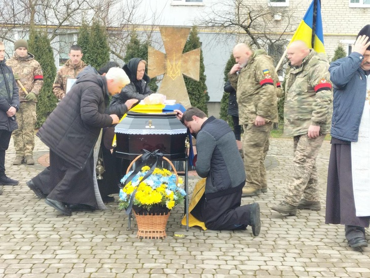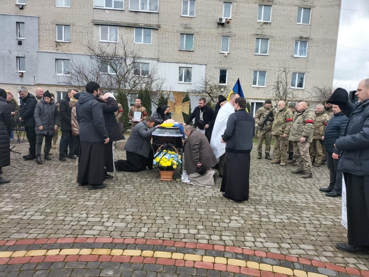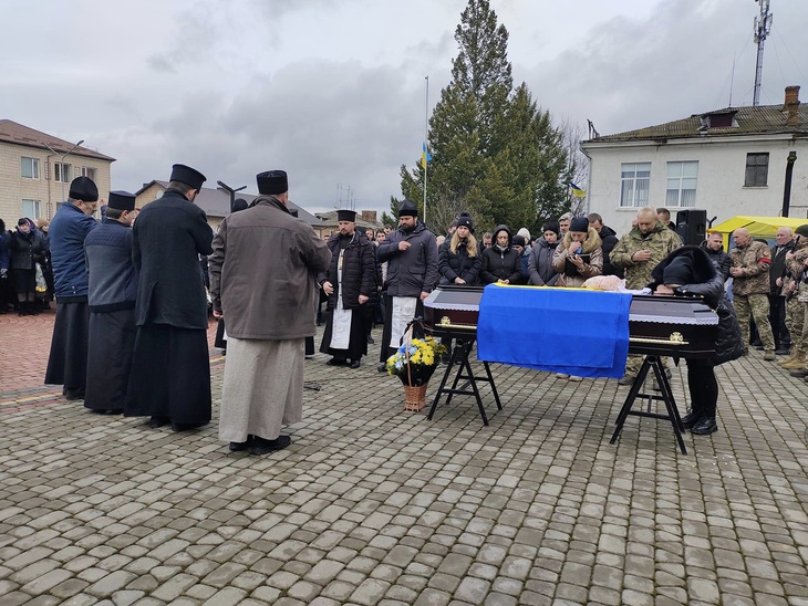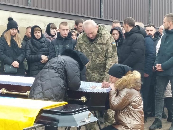 Сьогодні, 8 лютого, біля пам'ятного знака Борцям за волю та незалежність України відбулася громадська панахида за загиблим. Довгою вервечкою тягнуться до домовини, оповитої синьо-жовтим стягом, люди, аби віддати останню шану нашому захиснику. Море квітів, сліз, скорботи.