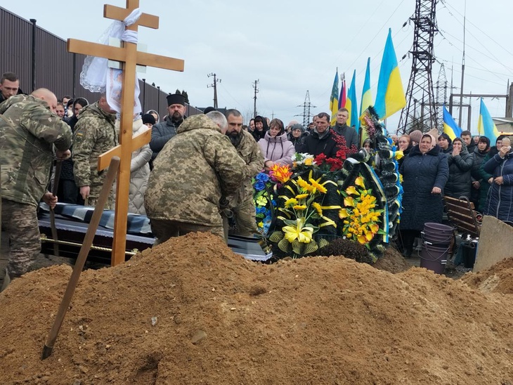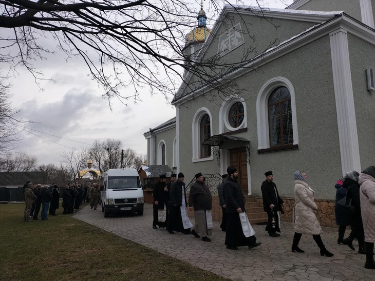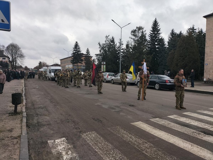 Згодом велелюдною процесією під тужливі мелодії військового оркестру та церковні піснеспіви Олега Васевича провадили до місця його останнього спочинку - на Алею Слави місцевого кладовища.