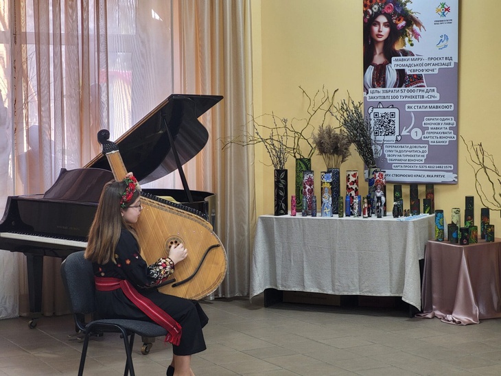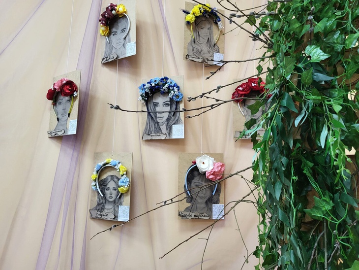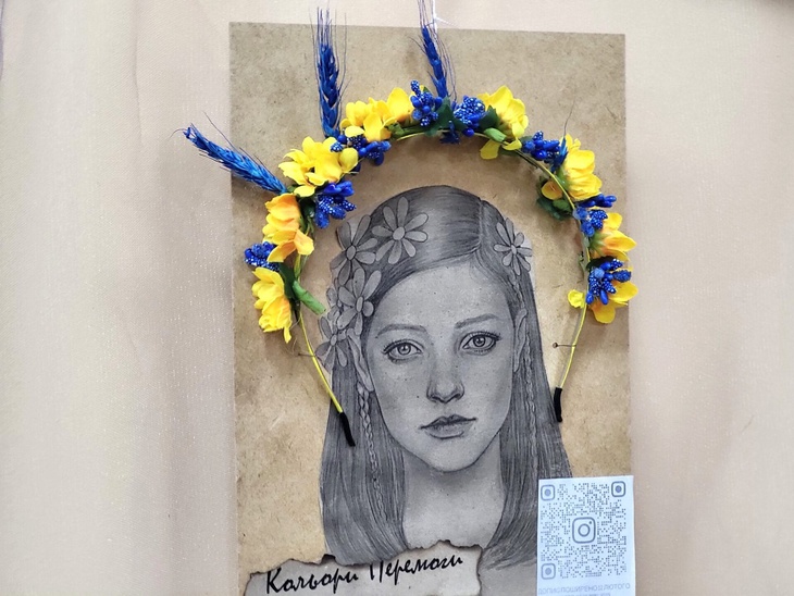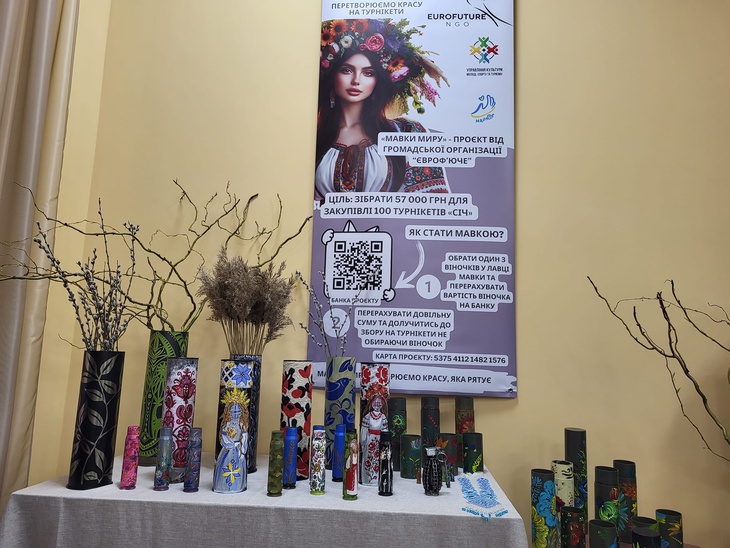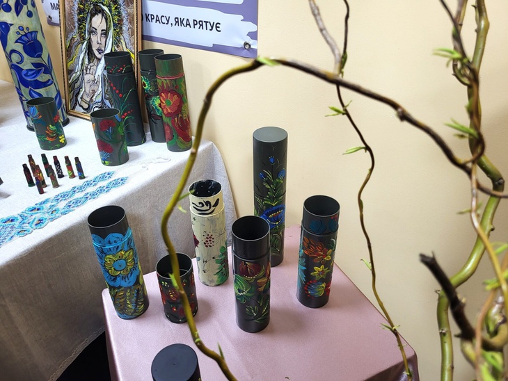 Кожен виріб має назву, QR-код, за яким можна дізнатись його автора, історію створення, вартість. Ще організатори пропонують - брошки Мавок, розфарбовані арт-об’єкти – гільзи, тубуси, що подарував колектив дитячої художньої школи, а також учасники одного з майстер-класів.