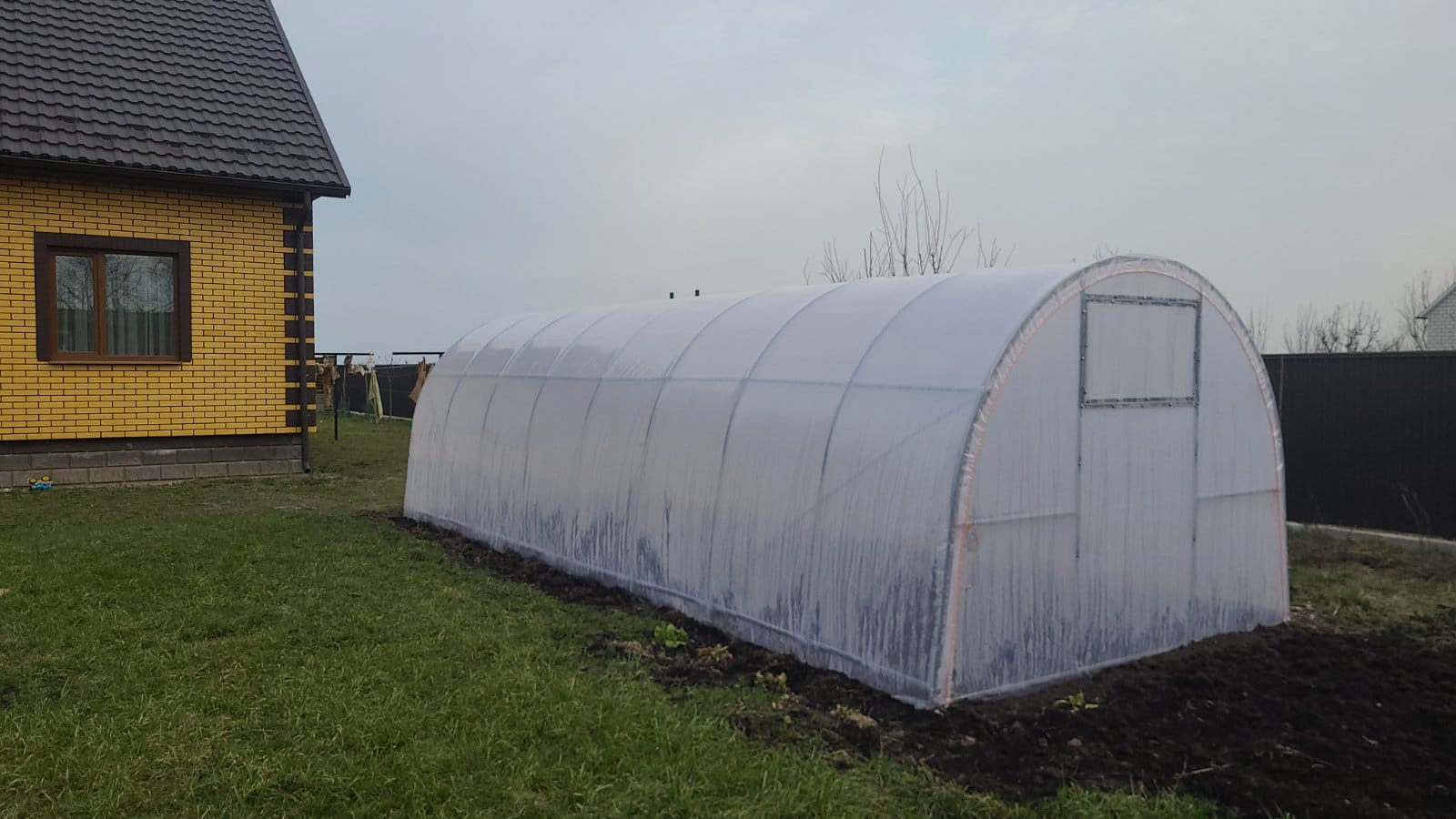 Тому комбінують плівку і полікарбонат. Його використовують на двері і вікна теплиці, а чохлом із плівки накривають основну площу.