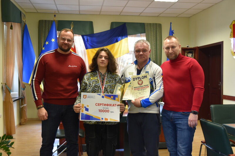 Міський голова Ігор Поліщук зустрівся з 13-річним Кирилом Коцагою, який на Відкритому Чемпіонаті Польщі з пауерліфтингу у містечку Залєсьє встановив одразу три рекорди із жиму штанги лежачи в категорії до 60 кг – рекорд Польщі, рекорд Європи і рекорд світу у федерації GPC (Міжнародна федерація пауерліфтингу).