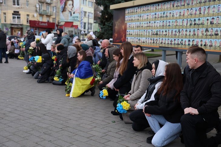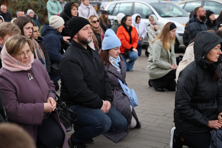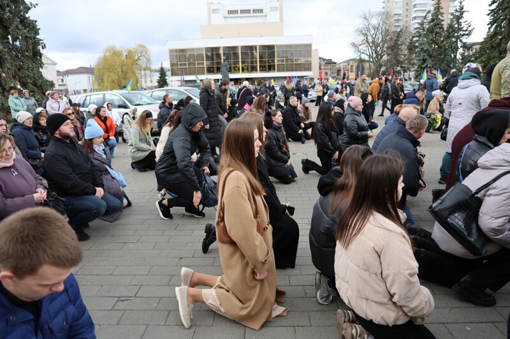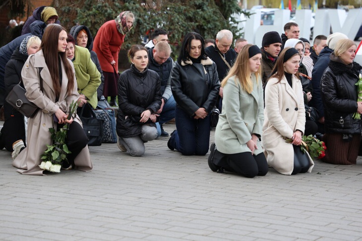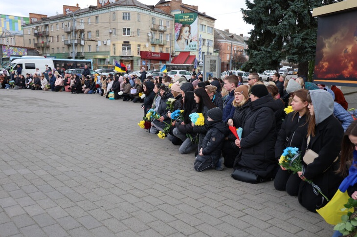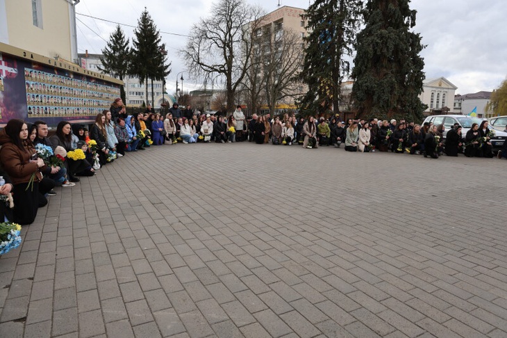 Потому, домовину з тілом полеглого захисника сотні лучан зустріли на колінах на Театральному майдані міста, де спільно помолилися за душу спочилого.